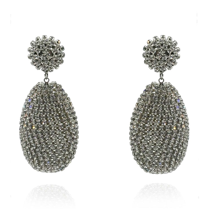 Silver Rhinestone Chain-Covered Large Drop Resin Earrings