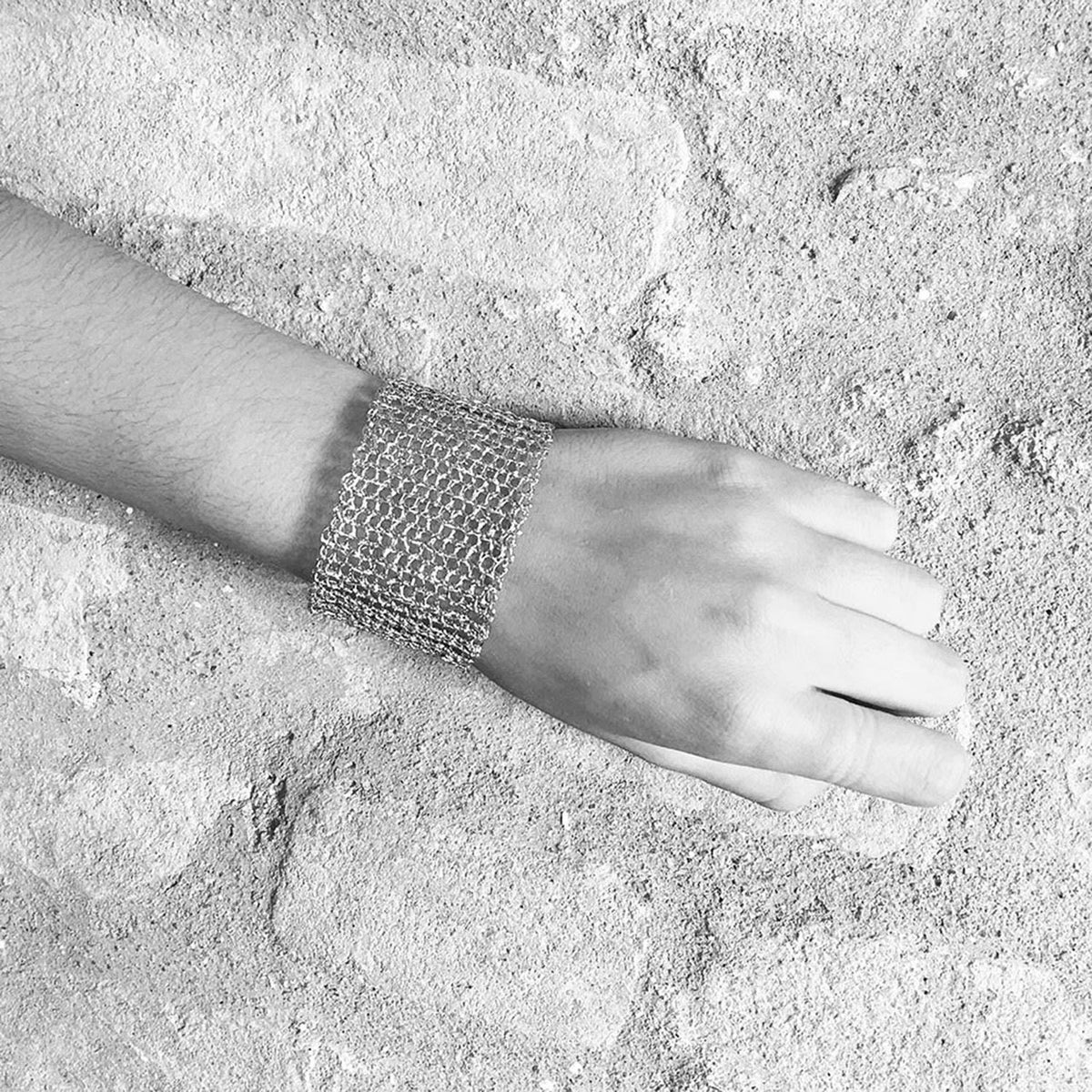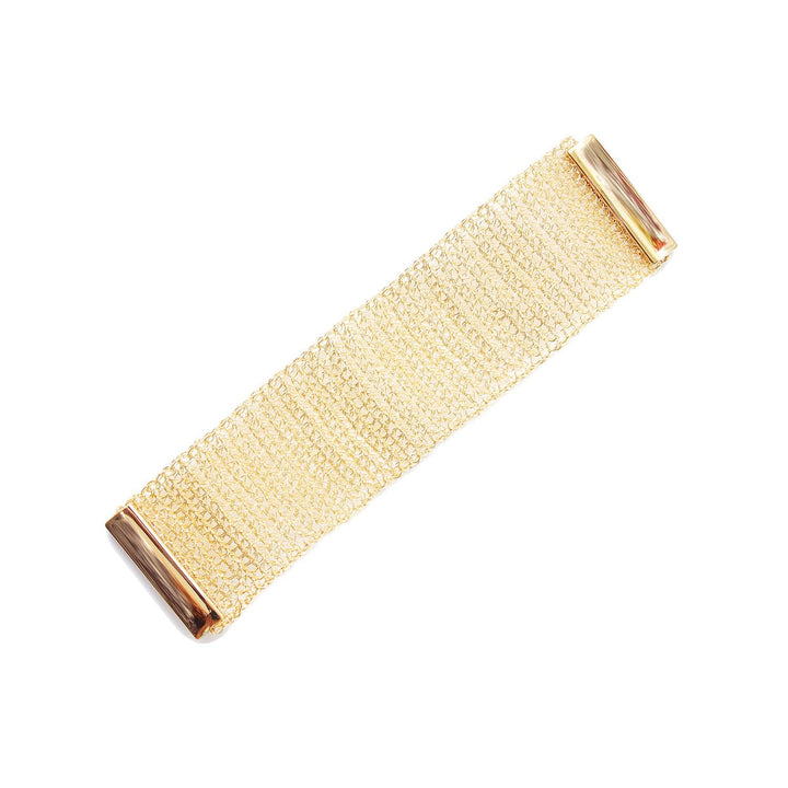 This All Gold Mesh Handmade Bracelet by Lavish by Tricia Milaneze is a delicate and comfortable cuff. Handcrafted by skilled Brazilian artisans with shiny 18 karat gold-filled copper wire, it is lightweight and versatile, perfect for any occasion from day-to-night. It is made from hypoallergenic and nickel-free material, making it a remarkable and comfortable piece of jewelry.