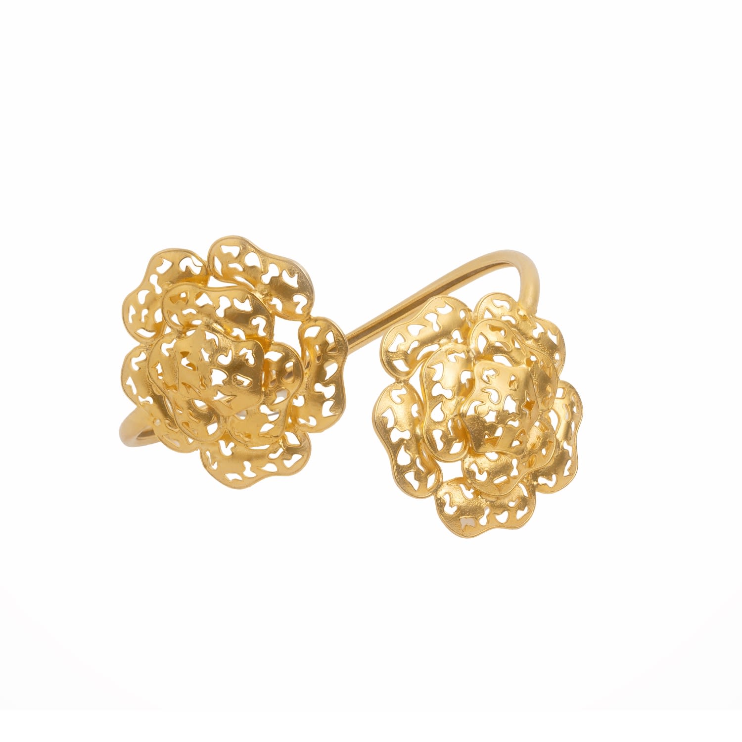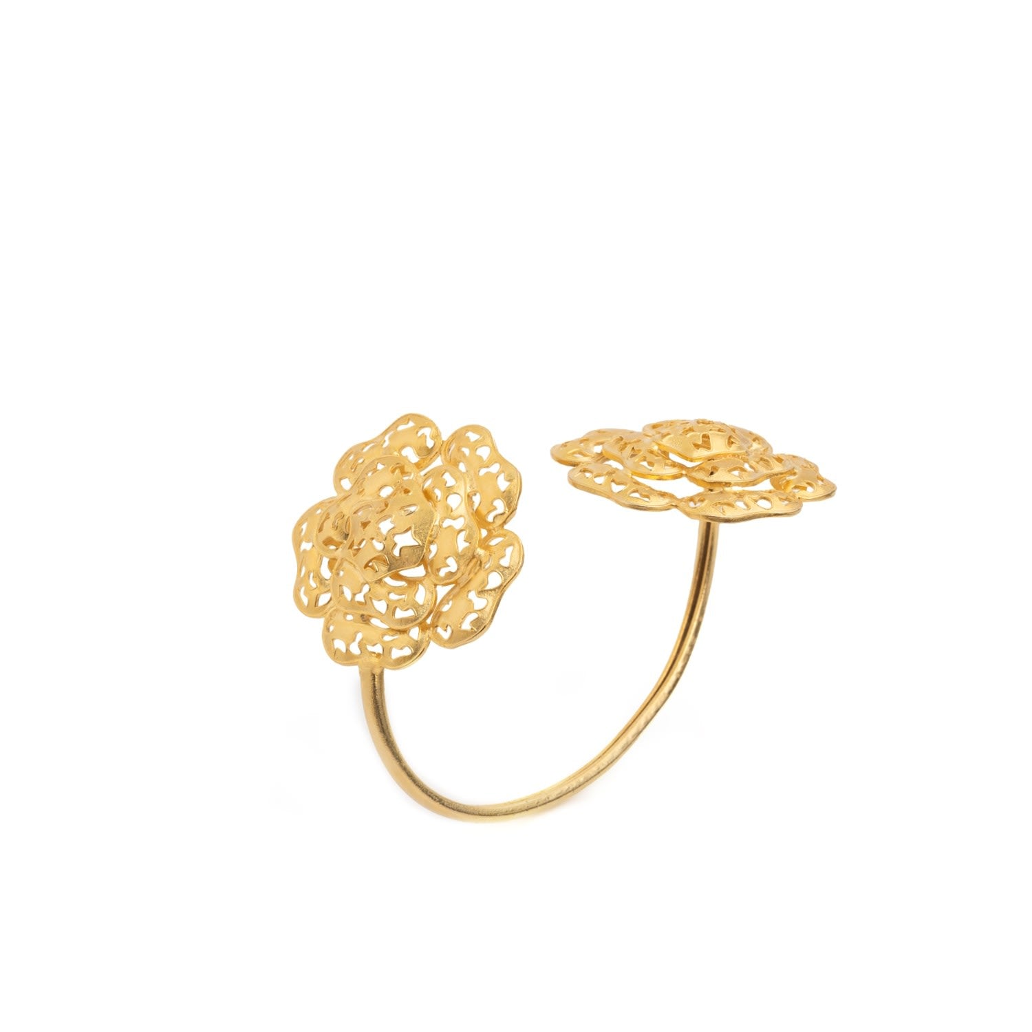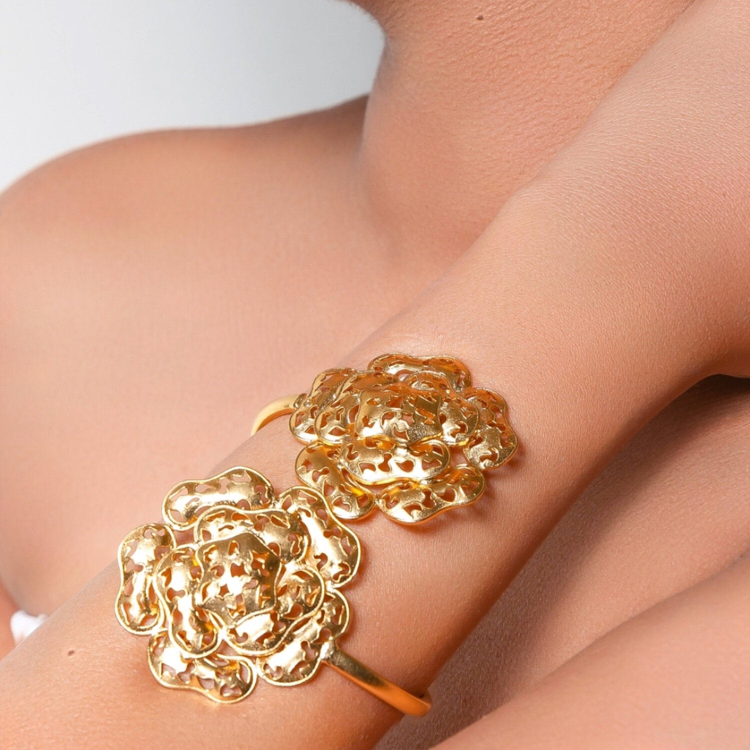 This Primrose Gold Bracelet by Meraki by Rashmi Bajaj is a stunning piece that combines natural beauty with sophisticated elegance. The bracelet features meticulously crafted primrose flowers plated in 24k gold, capturing the delicate and intricate essence of the bloom. This piece adds a refined touch of luxury to your wrist, perfect for both everyday wear and special occasions. Its timeless design and high-quality materials make it a beautiful and durable accessory, symbolizing the beauty found in nature and the artistry of fine craftsmanship.