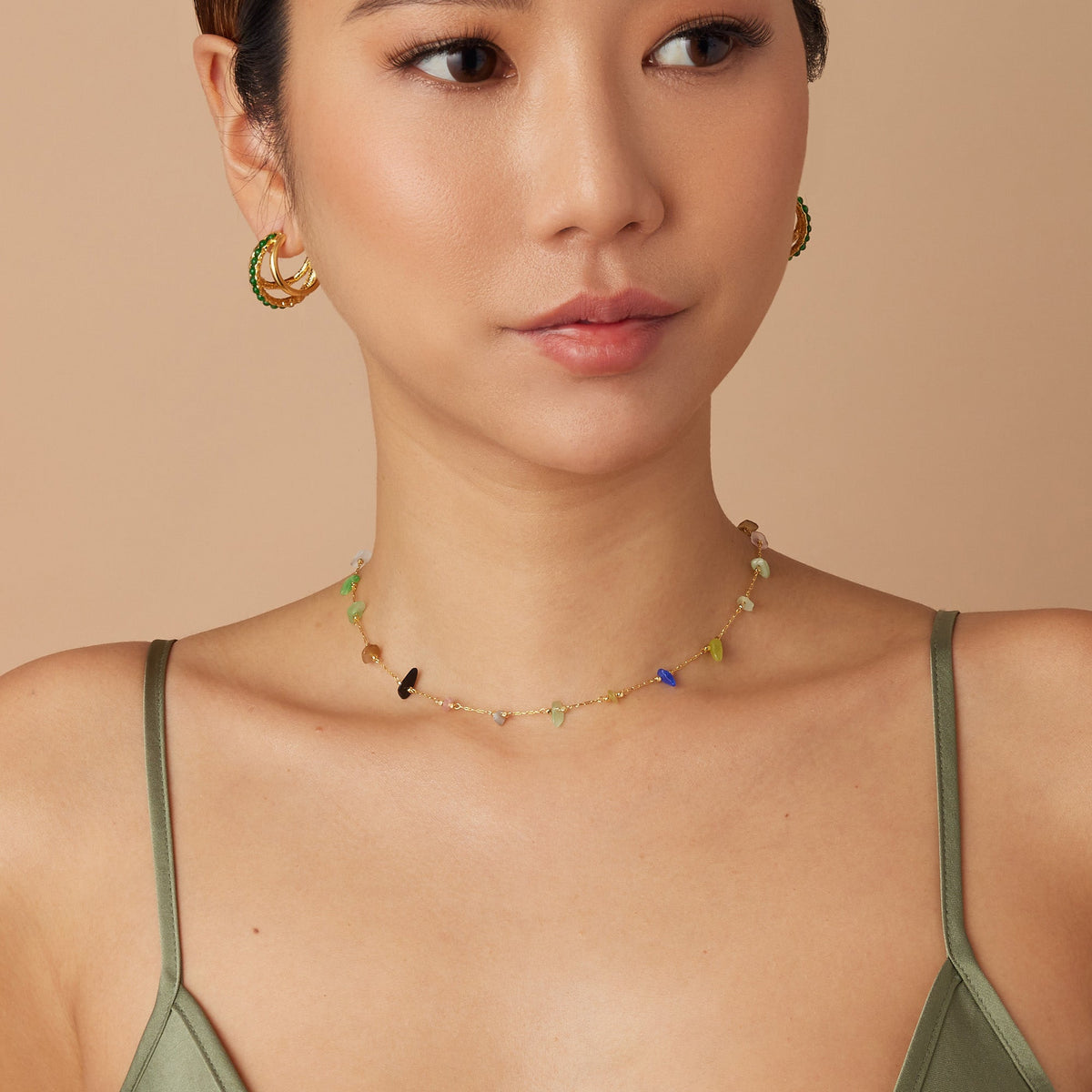 Cold Multi-Colored Stone Necklace