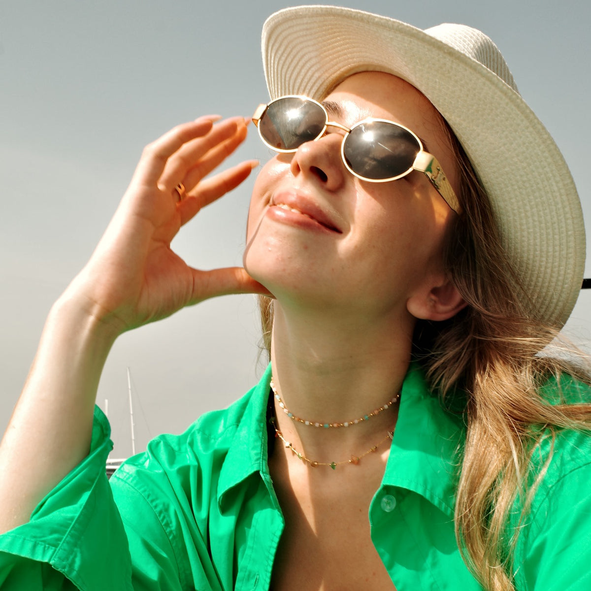 The Cold Multi-Colored Stone Necklace by Shabella Nyc is a vibrant and charming accessory. It features a unique array of icy-hued, multi-colored stones that radiate a distinctive appeal. The jewelry is created with a commitment to quality and longevity, using a nickel-free gold plating process and three times the normal coating to prevent tarnishing. This ensures that the necklace is stunning, safe for your skin, and built to last for years.