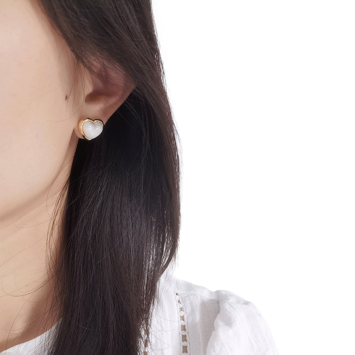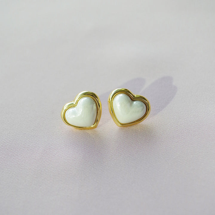 Porcelain Pearly White Heart Stud Earrings