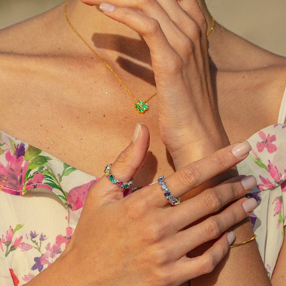 The Textured Vibrant Color Floral Silver Ring by Mejoma is a unique and stylish accessory. This silver ring features textured floral designs and a vibrant color that adds a pop of life to your wardrobe. It is a versatile must-have for any fashion-forward individual, perfect for adding sophistication to an everyday look or dressing up for a special occasion.