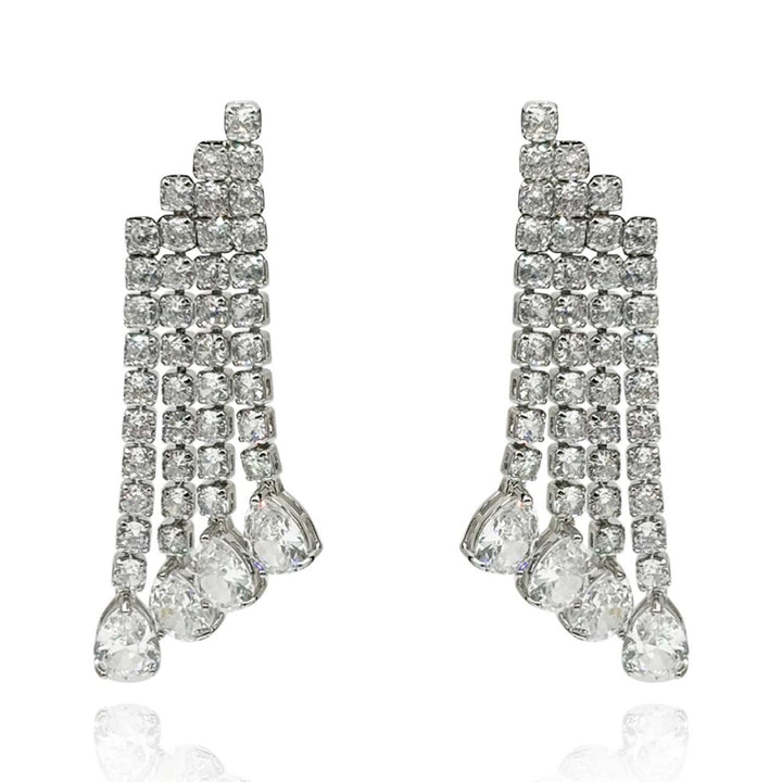 Sparkling Cubic Zirconia Rhodium Plated Earrings With Pear-Shaped Drop Stones