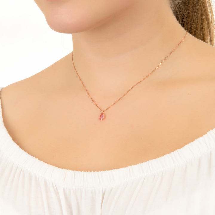 Pisa Mini Teardrop Necklace Rosegold Pink Tourmaline