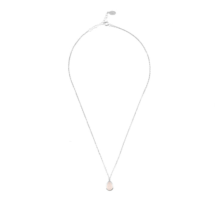 Pisa Mini Teardrop Necklace Silver Rose Quartz