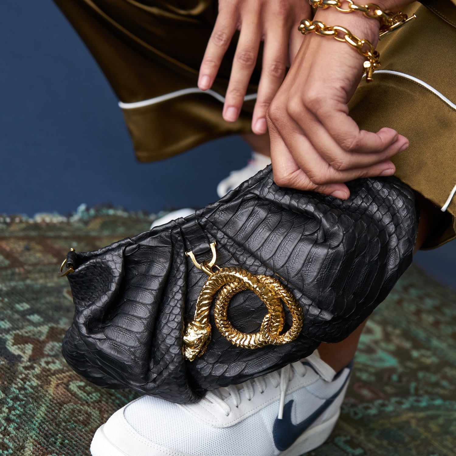 This Gold Snake Clip-On Charm by Lovard is a symbolic and stylish accessory. It represents creativity, independence, and style. The charm, plated in 18k gold, can be clipped onto a bag or a chain, adding a unique and meaningful touch to your look.