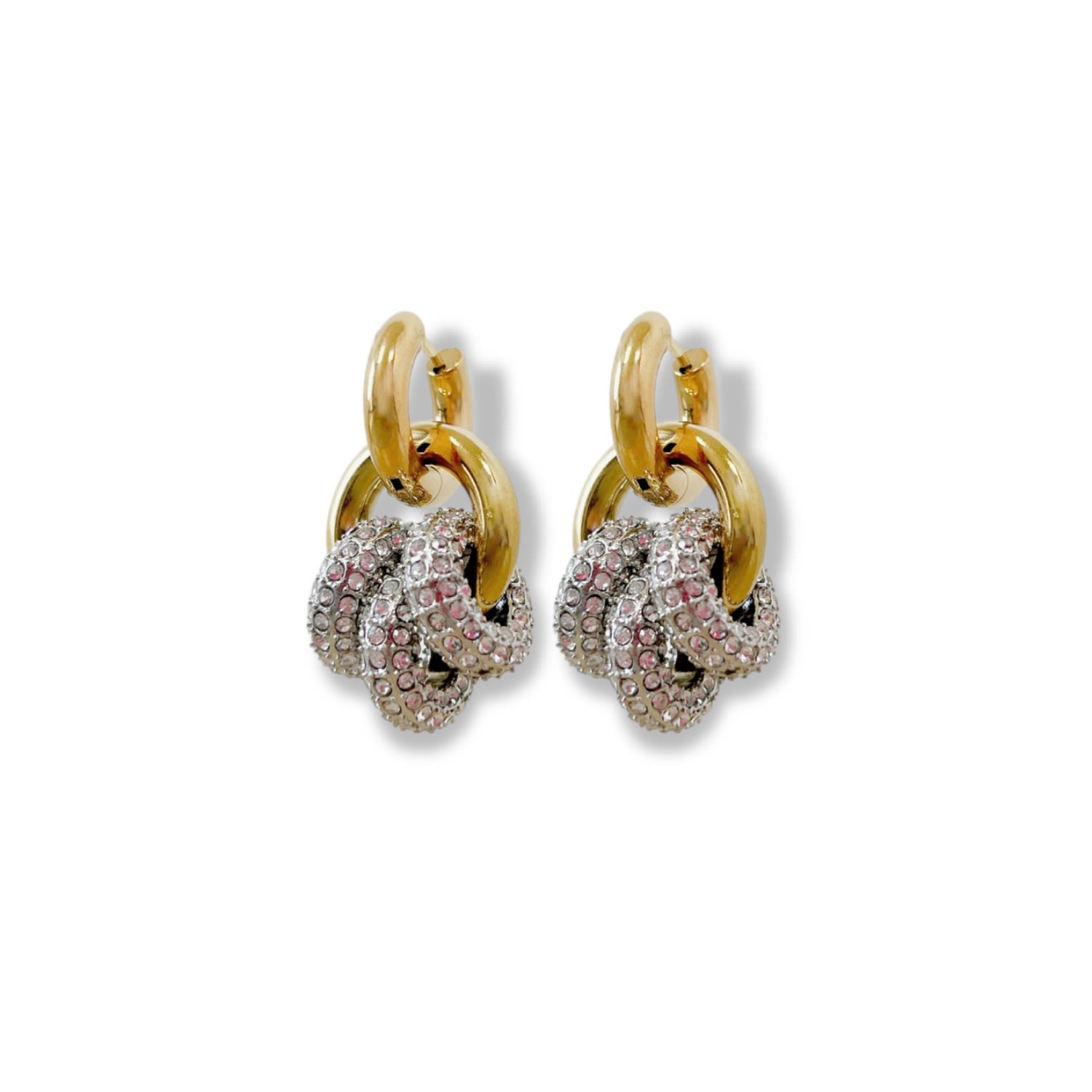 These Sphere Harmony Trio Gold-Silver by Vicky&Nico are a signature statement piece that embodies artistry and innovation. Inspired by the fluidity of circles, they feature a harmonious dance of three crystal-encircled rings in gold and silver. This creates a versatile and dynamic balance of colors and style. These earrings are a delicate yet bold infusion of style, designed to elevate any outfit with their refined and sophisticated aesthetic.