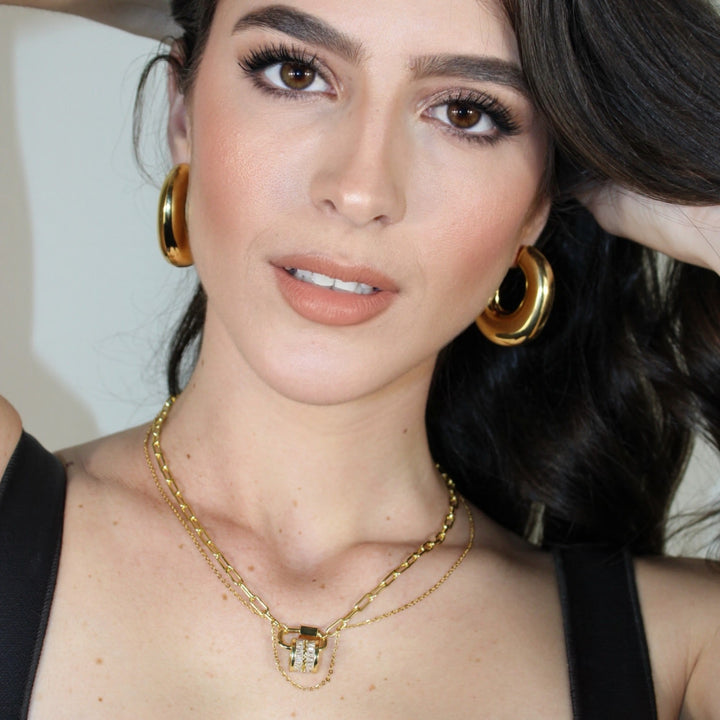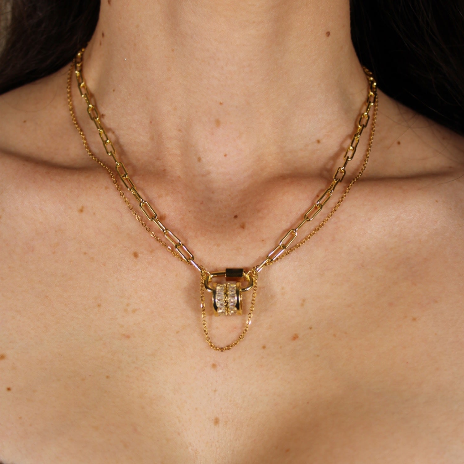 Be Loved Double Pendant Layered Necklace - Crystal Carabiner