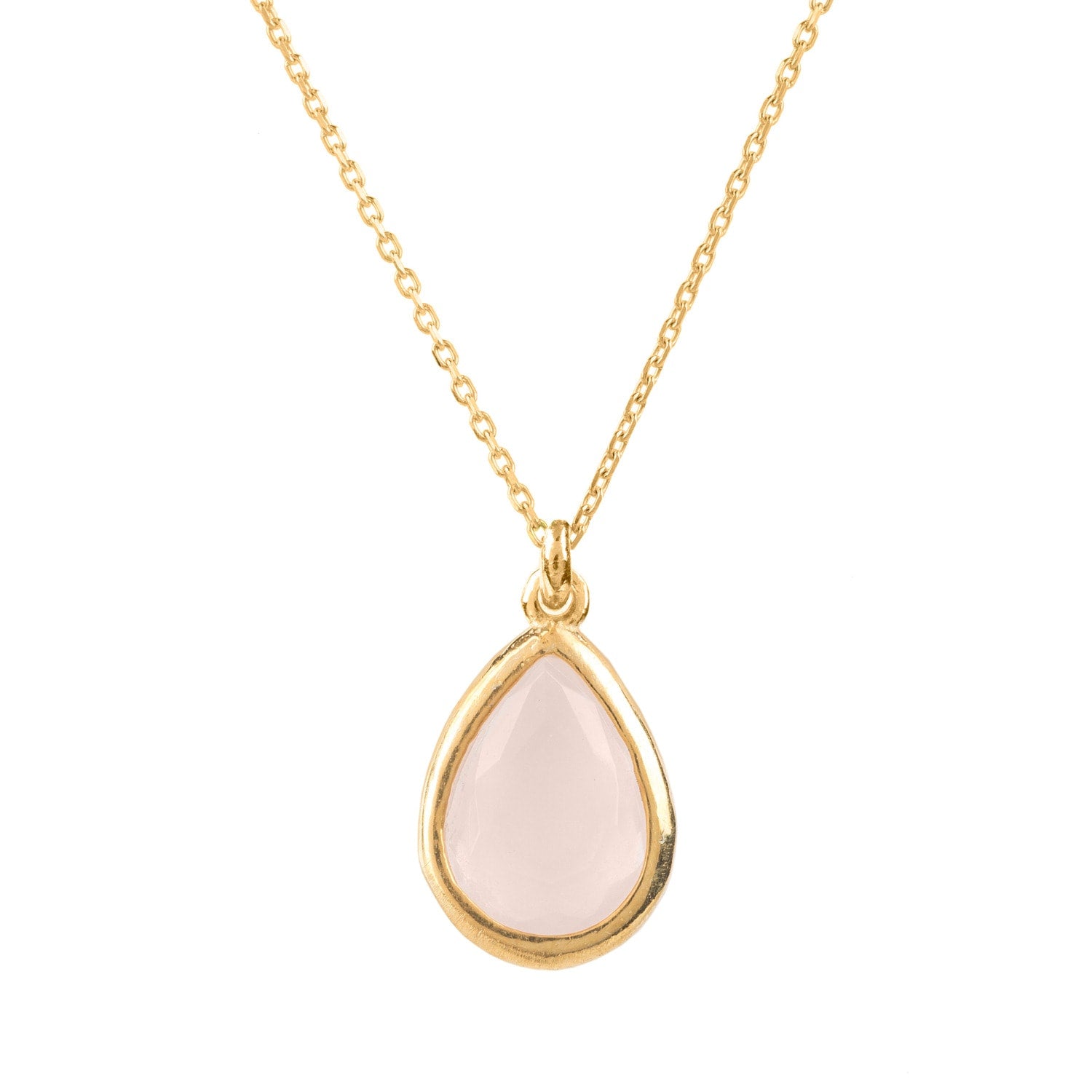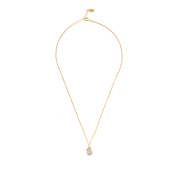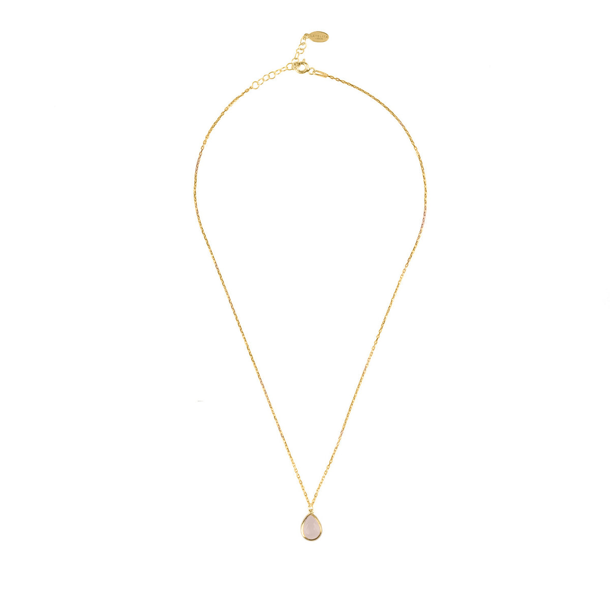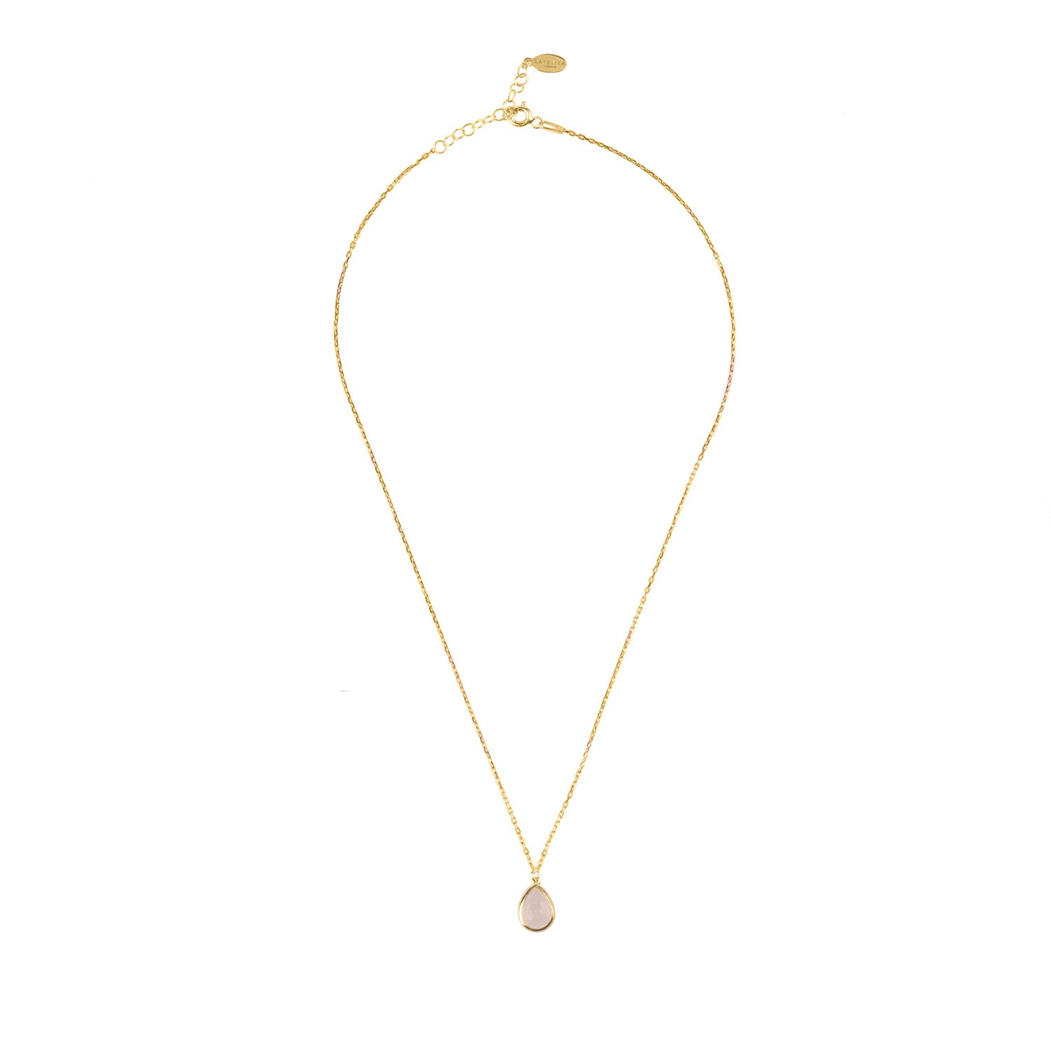 Pisa Mini Teardrop Necklace Gold Rose Quartz
