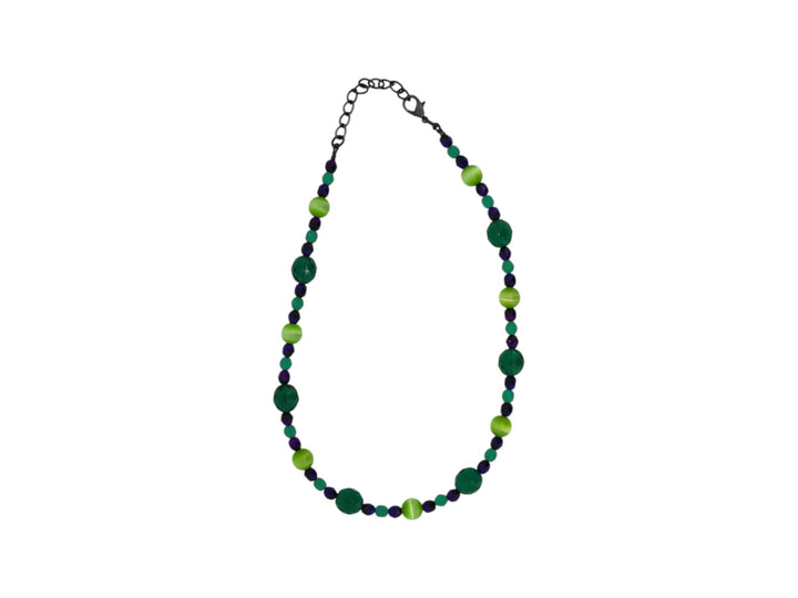 This necklace is handcrafted with vintage beads and an oxidized sterling silver-plated clasp.