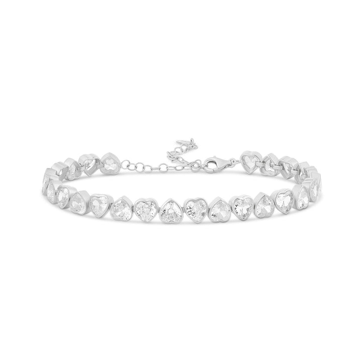 Alternating Bezel-Set Heart Tennis Bracelet - Silver