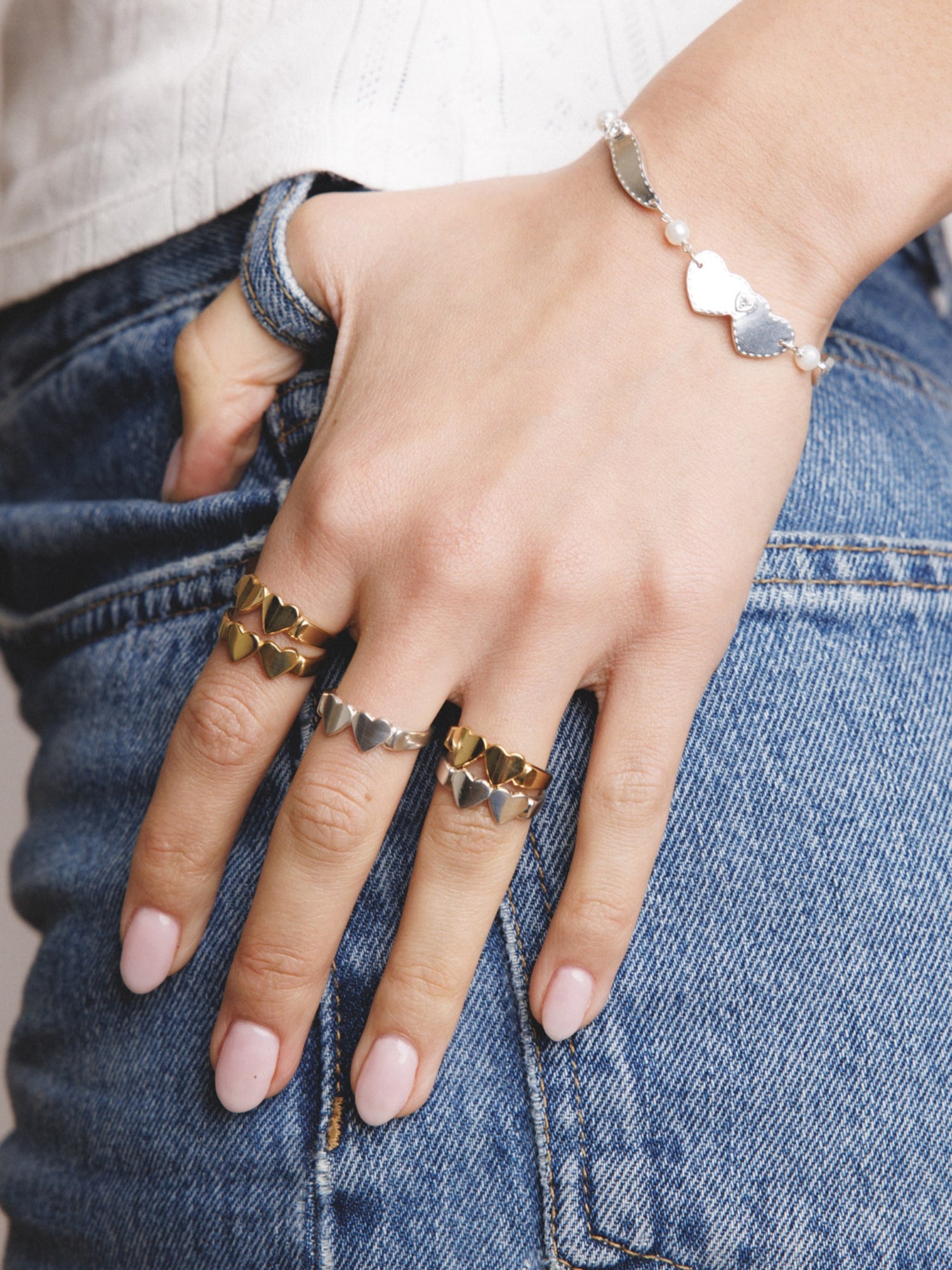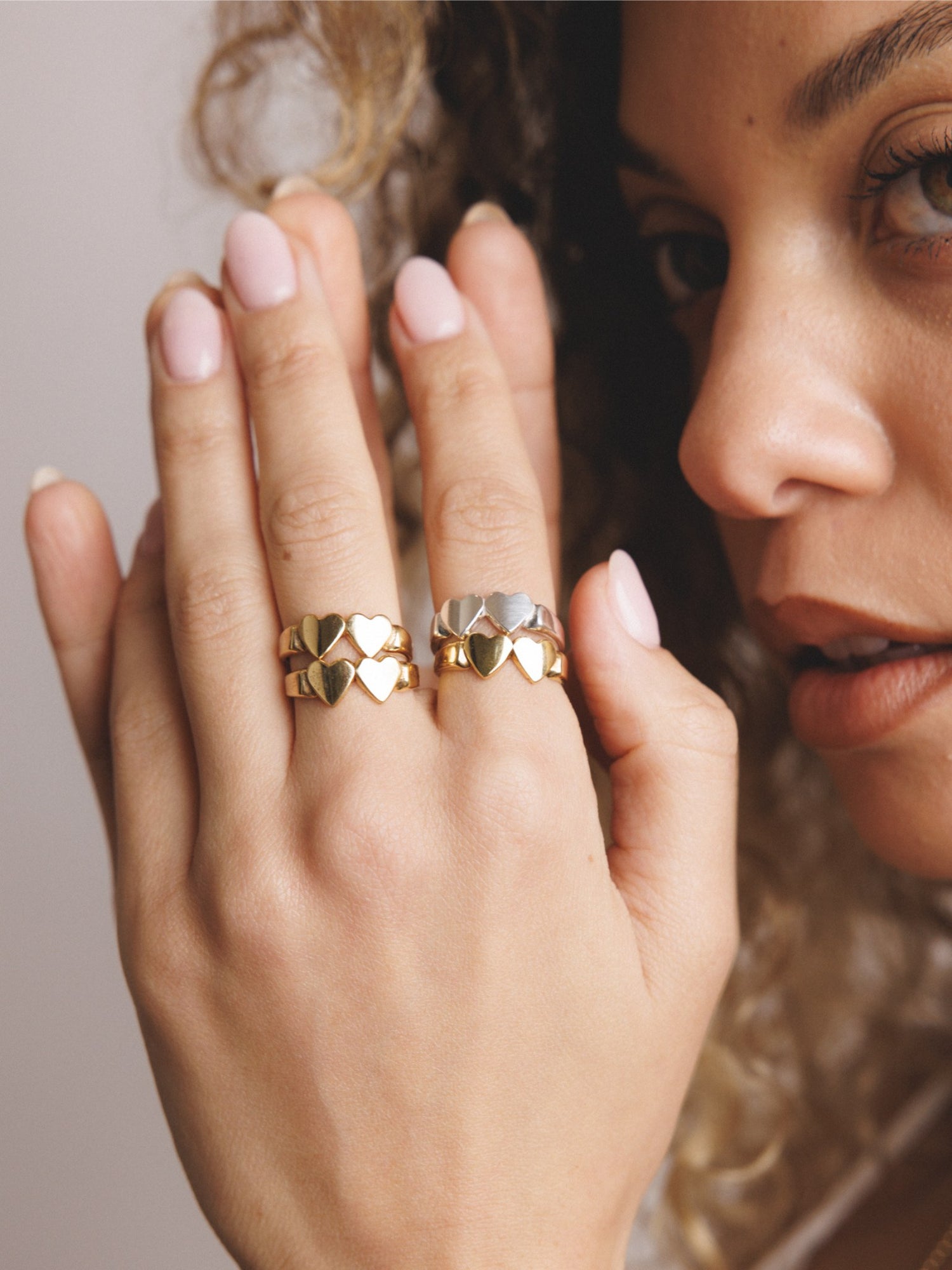 This ring is crafted from gold vermeil which is a thick 18k gold layer over sterling silver. It features a double heart design.
