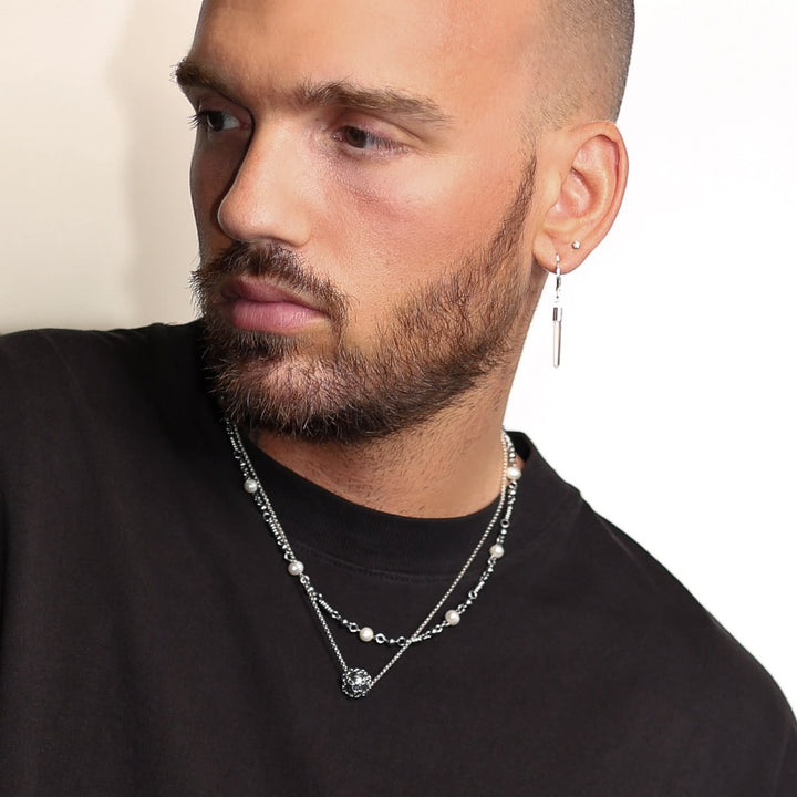 This Caged Hematite Sphere Pendant by Mhart is a minimal and modern piece that embodies quiet strength. A polished hematite sphere, with its deep metallic sheen, is held within a delicate cage, creating a design that is both architectural and grounded. This necklace is a testament to balance and simplicity, perfect for layering with other pieces or wearing alone for a refined, contemporary look.