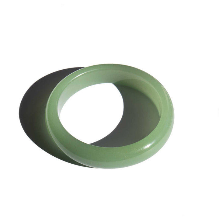 This Smoke Opaque Light Green Jade Stone Bangle by Seree is a mysterious and captivating accessory. Handcrafted from natural quartzite, its light green-cyan shade is undefinable, just like you. The stone's natural characteristics mean each bangle is unique in color and texture, making it a one-of-a-kind piece. The bangle has a smooth, polished feel and is perfect for adding an organic and elegant touch to your style.