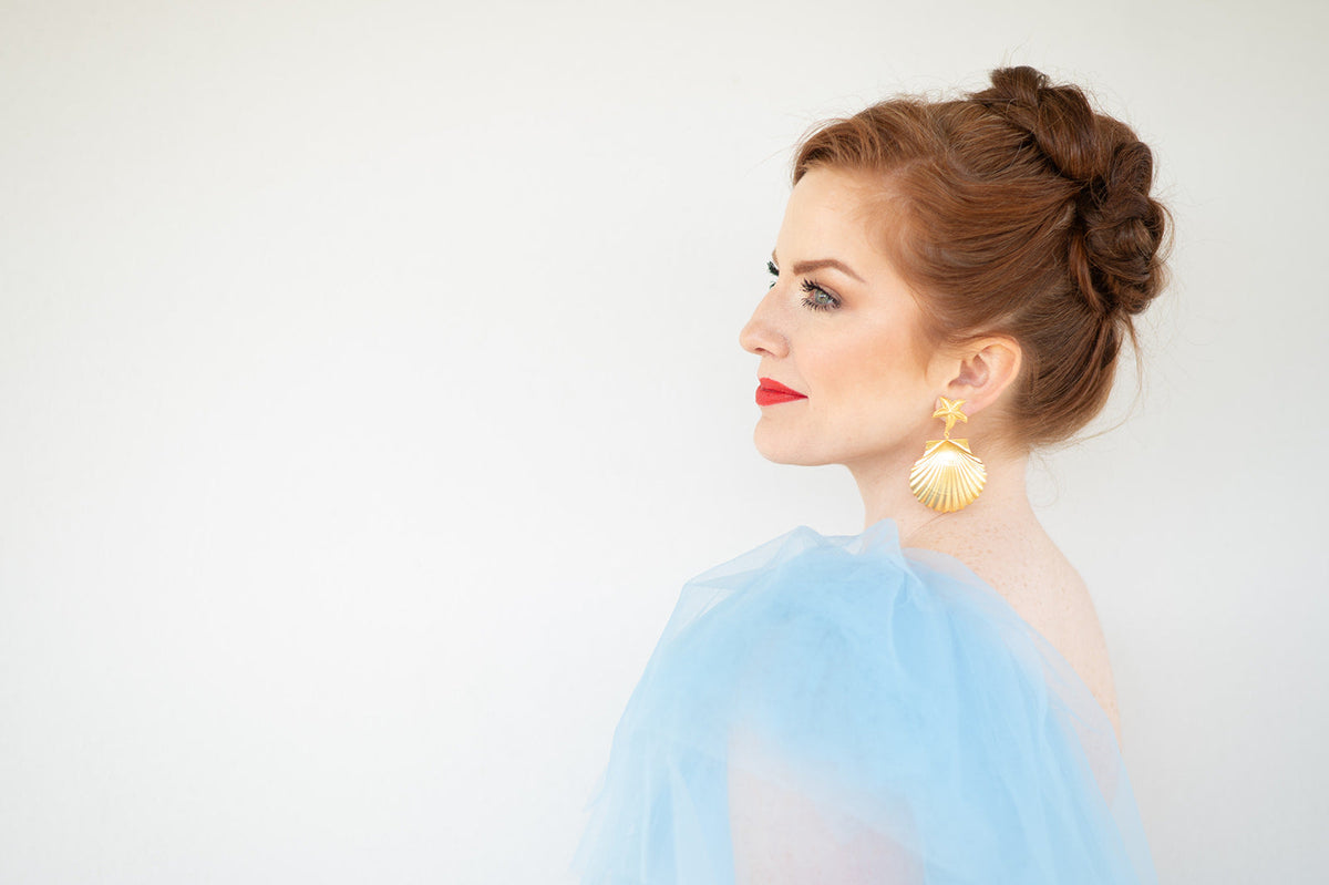 These Large Starfish Shell Earrings by The Pink Reef are a gorgeous and glamorous duo. The petite starfish and oversized shell design is big on style yet super light, giving you a beautiful statement without the weight. With a glamorous look and a touch of coastal charm, these earrings are a perfect accessory for any occasion.