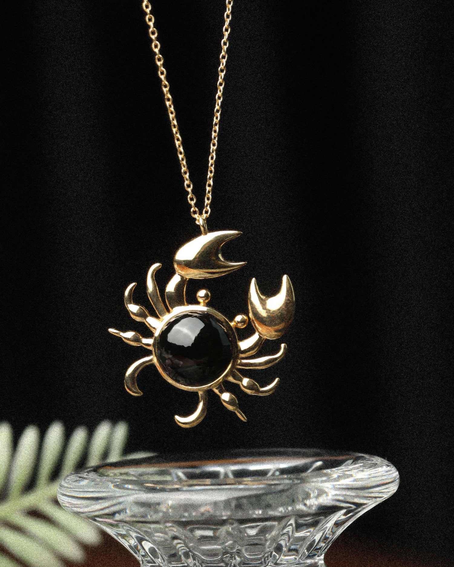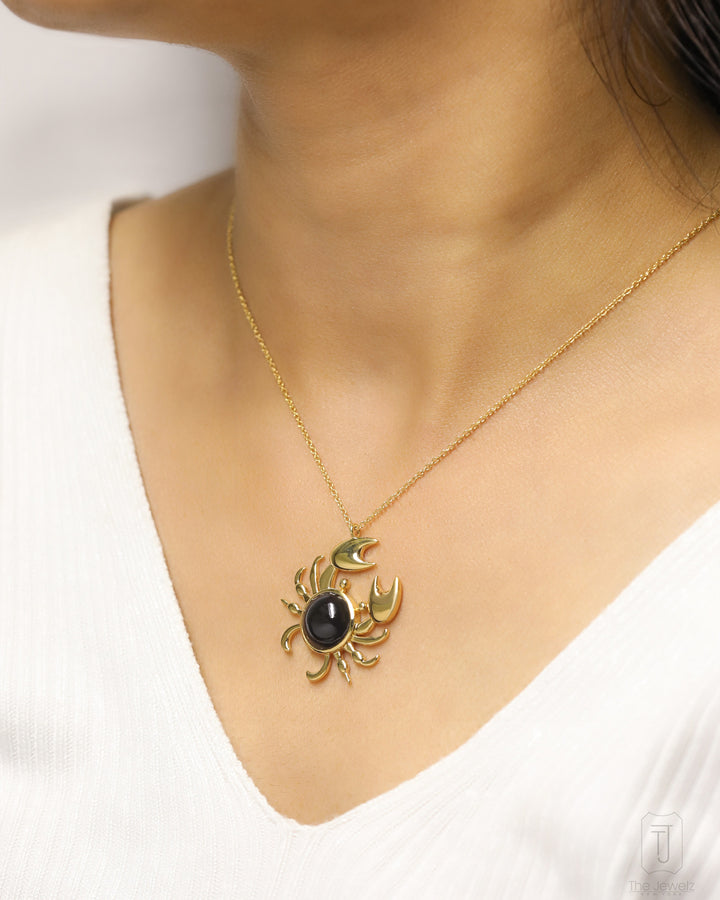 Materials: This necklace is made of 925 solid silver (6.73 grams) and features a black onyx (5.02 carats) and a crab charm. It is 16 inches long.