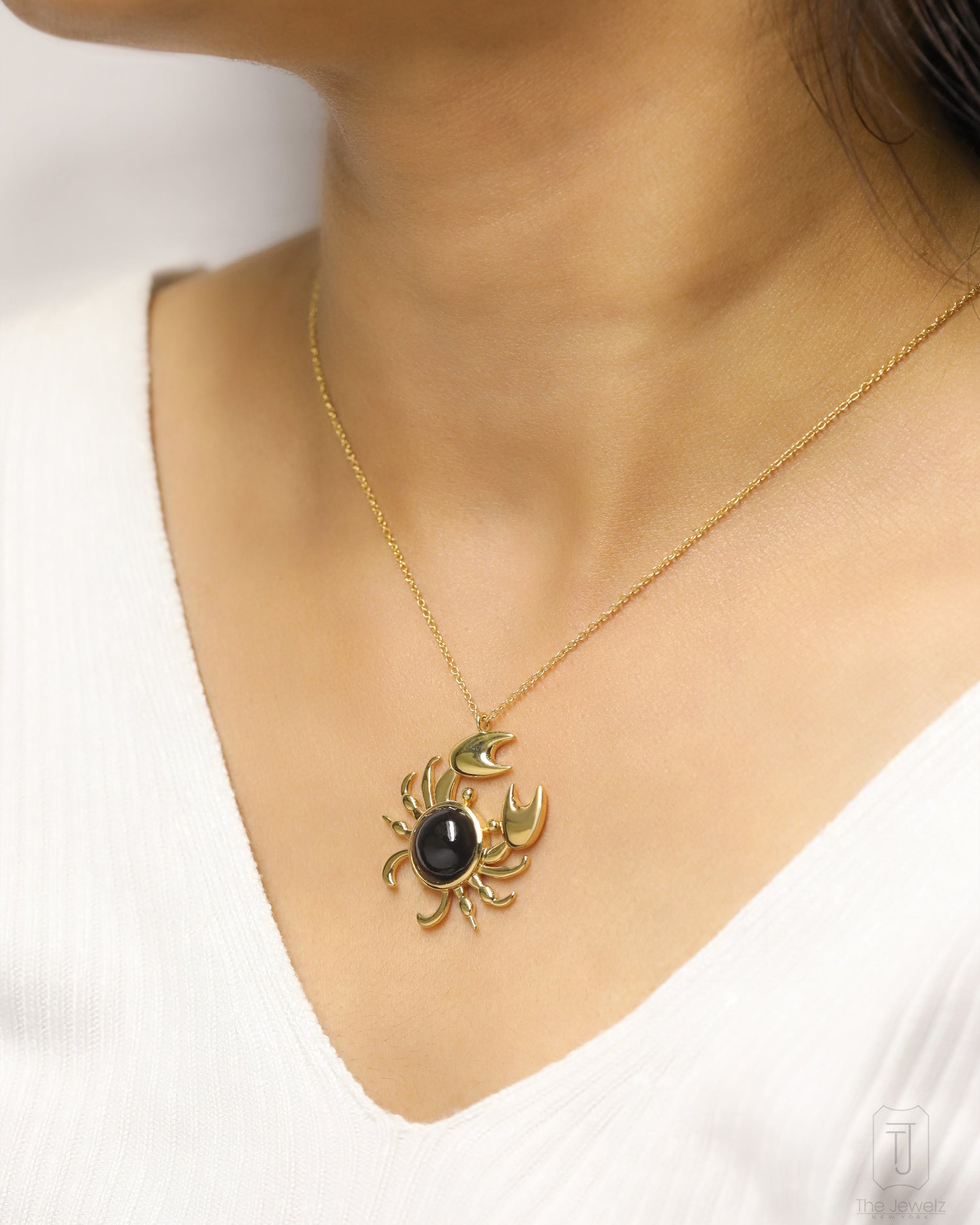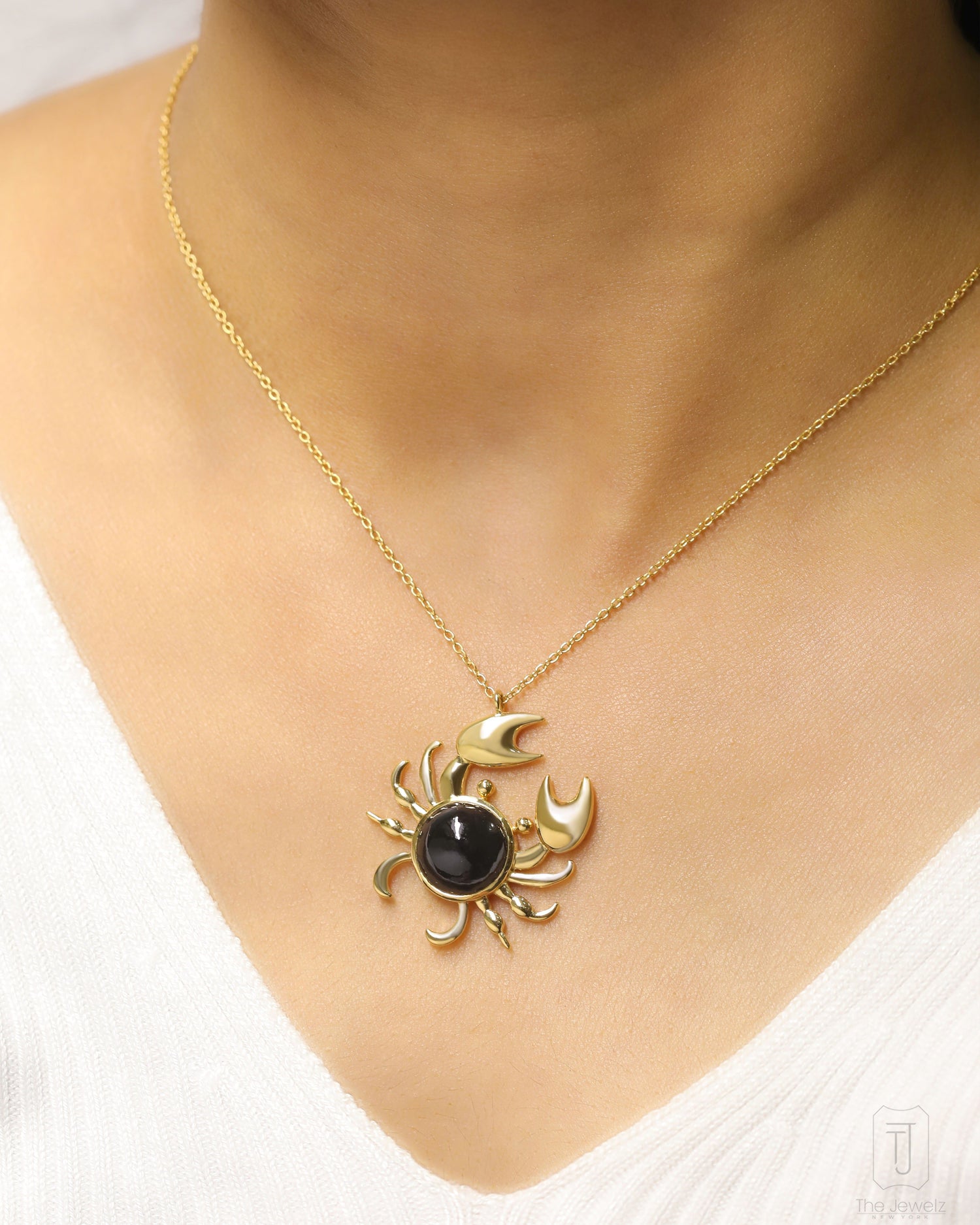 Style Notes: This Onyxpinch Crab Silver Necklace by The Jewelz is a playful and elegant accessory. The necklace is made from gleaming 925 solid silver and is adorned with a bold 5.02-carat black onyx in a unique crab design. This lightweight necklace adds a splash of fun and sparkle to any outfit, making it perfect for those who love a little whimsy with their sparkle. It is a unique and charming piece for your jewelry collection.