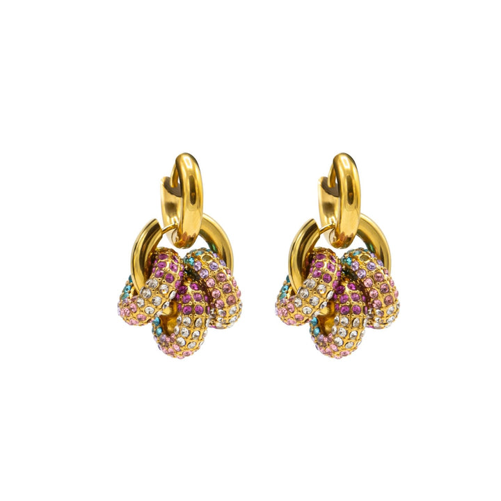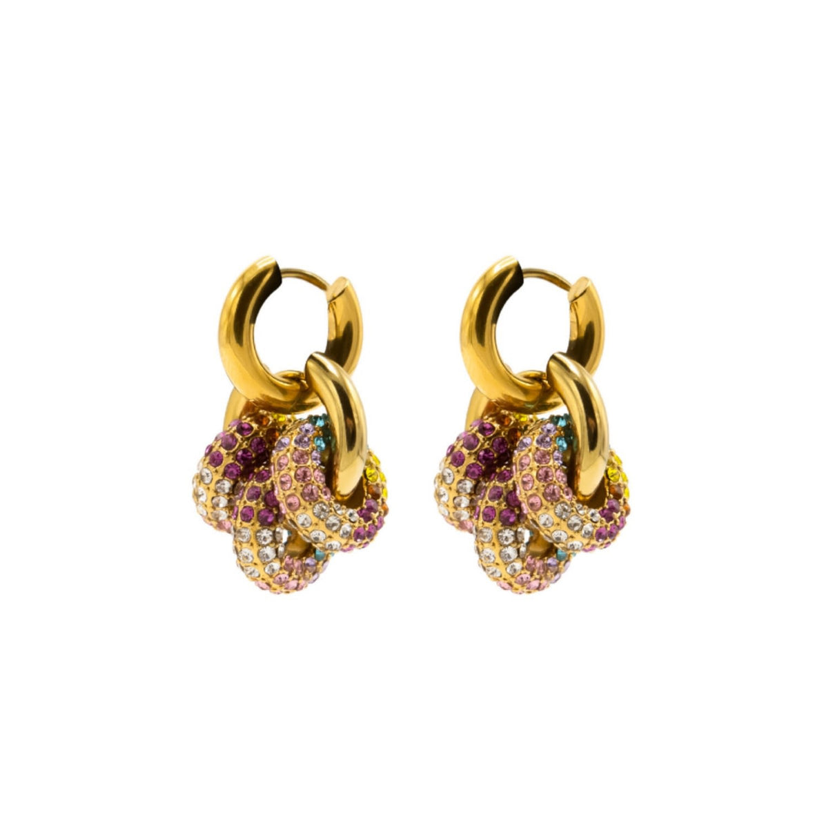 These Sphere Harmony Trio Earrings - Multicolor by Vicky&Nico are a signature statement piece that embodies artistry and innovation. Inspired by the fluidity of circles, they feature a harmonious dance of three crystal-encircled rings. The multicolor crystals create a vibrant and dynamic look, perfect for amplifying your individual essence. These earrings are a delicate yet bold infusion of style, designed to elevate any outfit with their refined and sophisticated aesthetic.