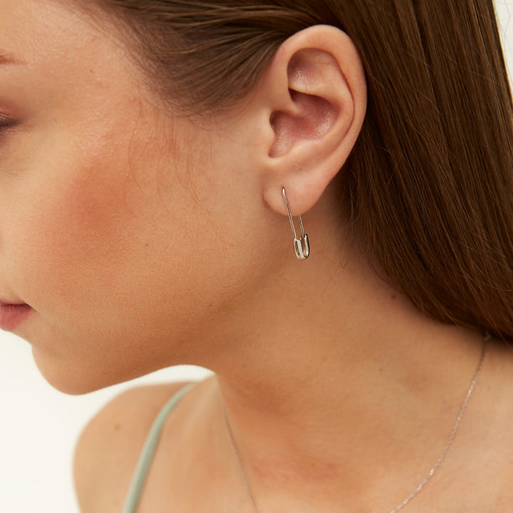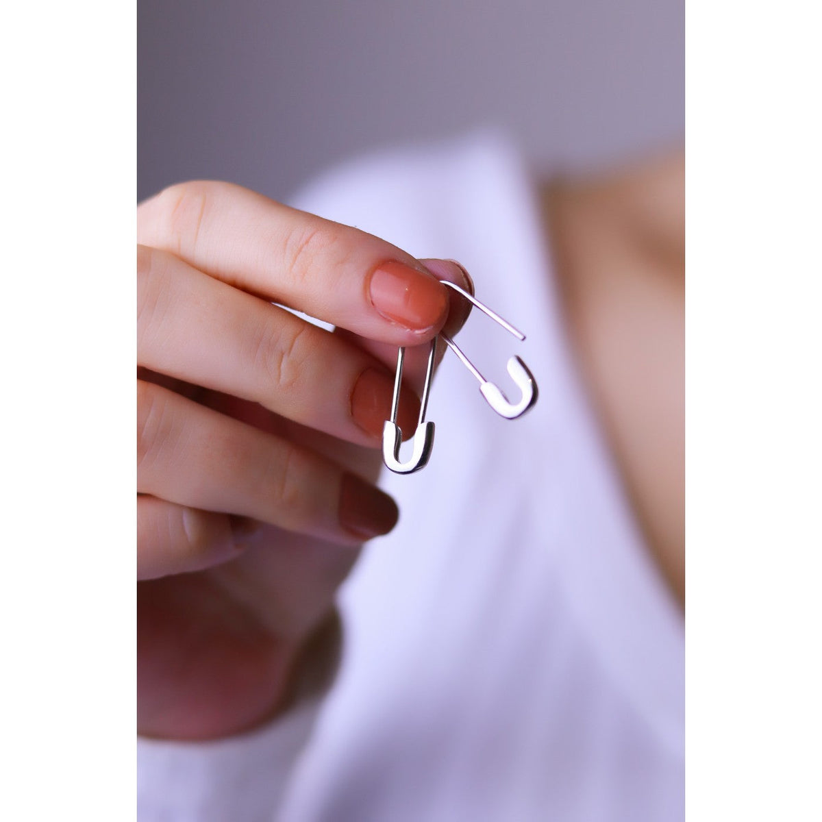 These earrings are made from 925 recycled sterling silver. They feature a safety pin motif.