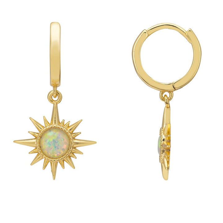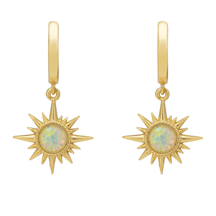 Apollo White Opal Starburst Huggie Hoop Earrings Gold
