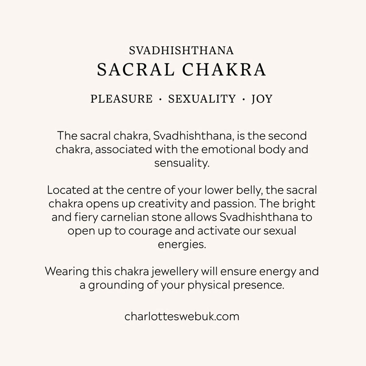 This Sacral Chakra Silver Bracelet by Charlotte's Web Jewellery inspires creativity, courage, and vitality. Embellished with vibrant orange carnelian gemstones and a delicate lotus charm, it channels the energy of the Svadhishthana chakra. Designed to empower its wearer, it is more than jewellery—it is a talisman for artistic expression and self-confidence. A thoughtful gift, especially for spiritual souls, it pairs beautifully with the matching Chakra ring and necklace.