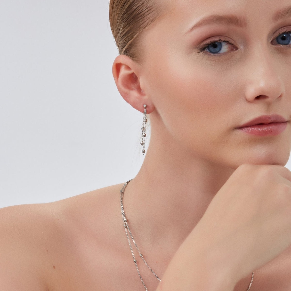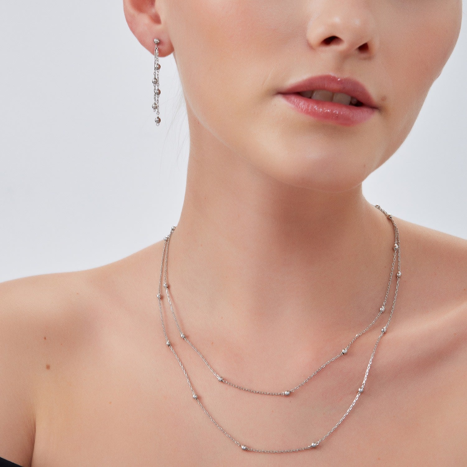 Dorica Sterling Silver Multi Bead Drop Earring - Silver
