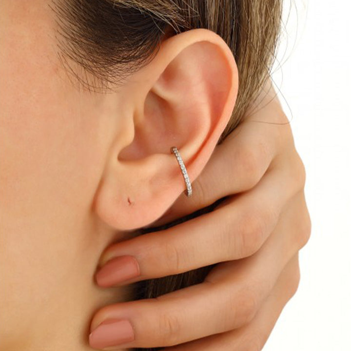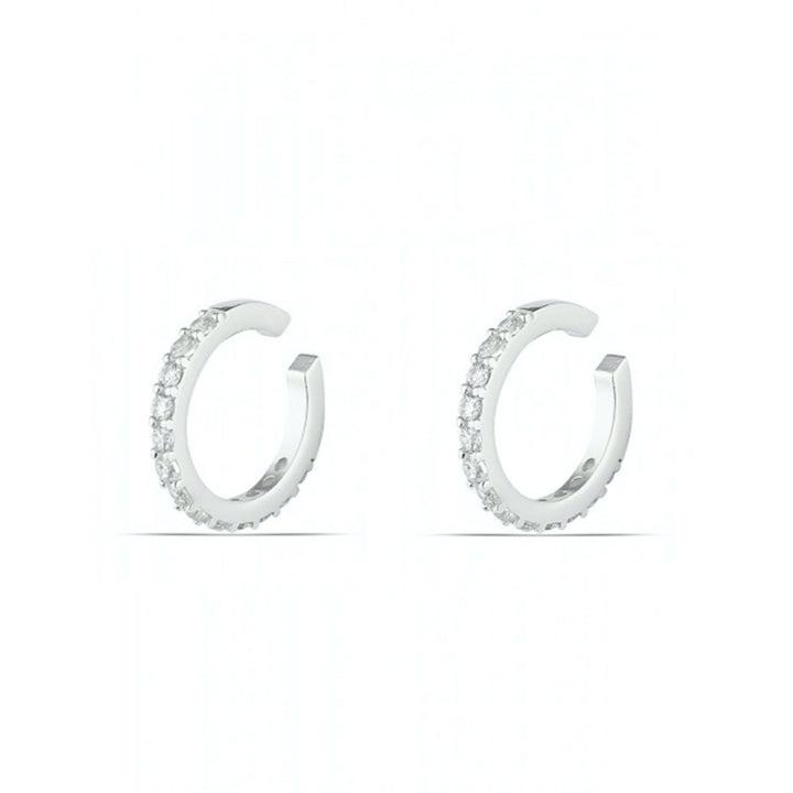 Cubic Zirconia Sterling Silver Ear Cuff No Piercing - Silver - Pair