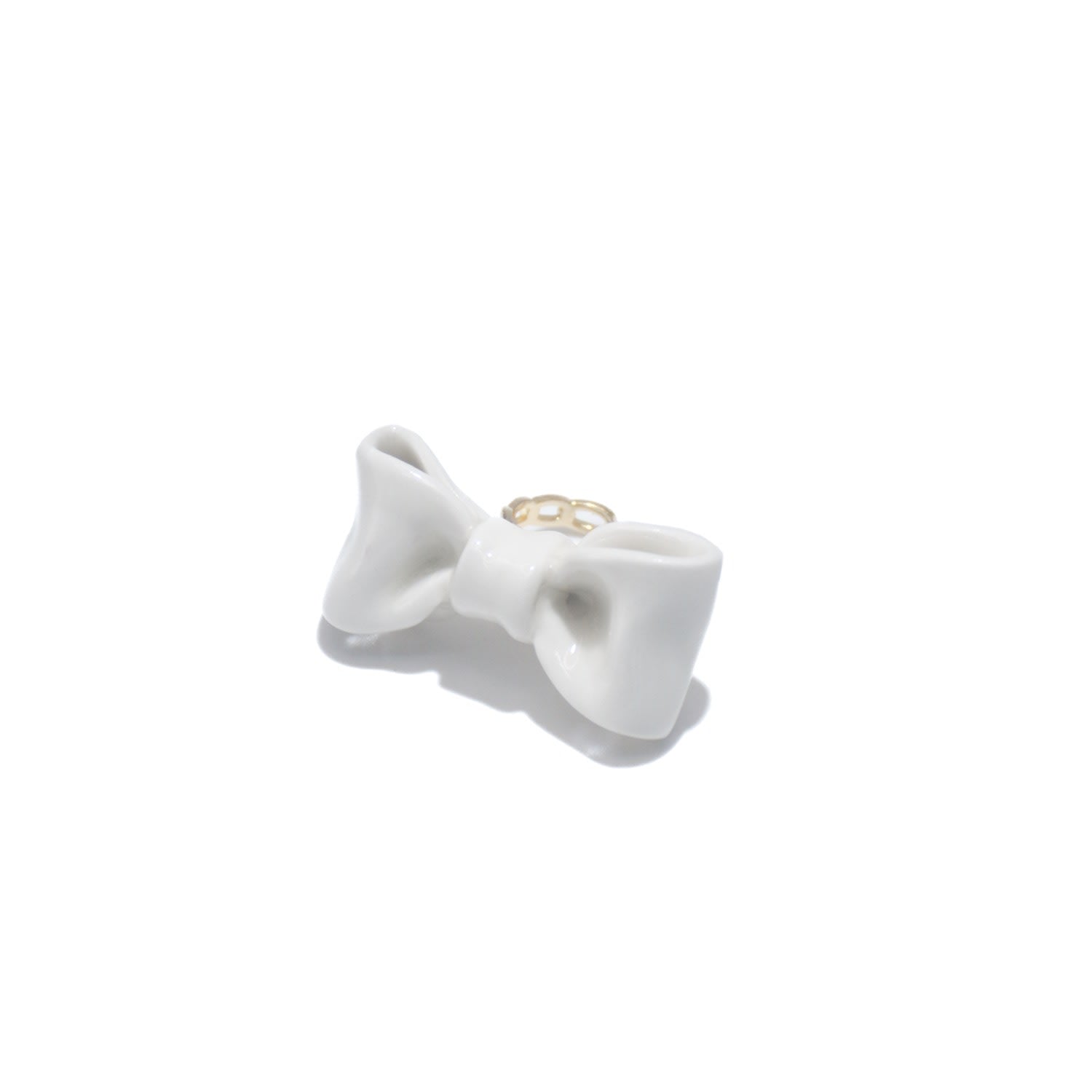 Bowtie Maniac Large Ceramic Bowtie Gold Plated Brass Ring