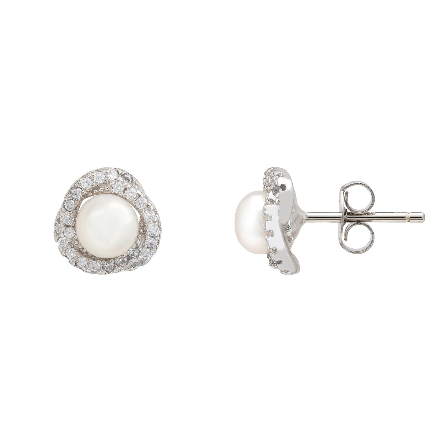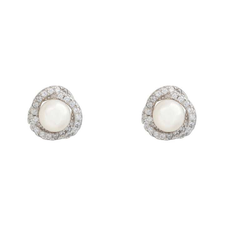 These Rococo Pearl Stud Earrings Silver by Latelita reinterpret a classic with modern allure. A button-shaped pearl, encircled by delicate zircons, glows with soft luminosity. Symbolizing purity and love, they are perfect for June birthdays, bridal elegance, or everyday chic, destined to become a jewellery box staple.