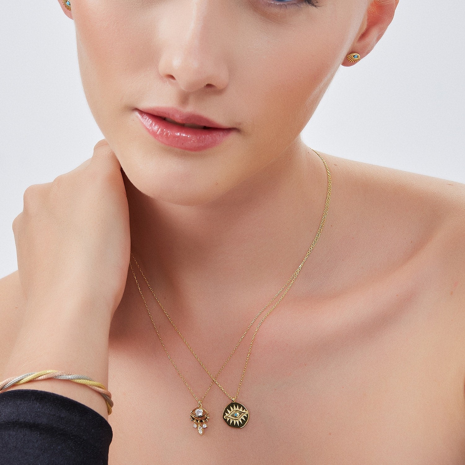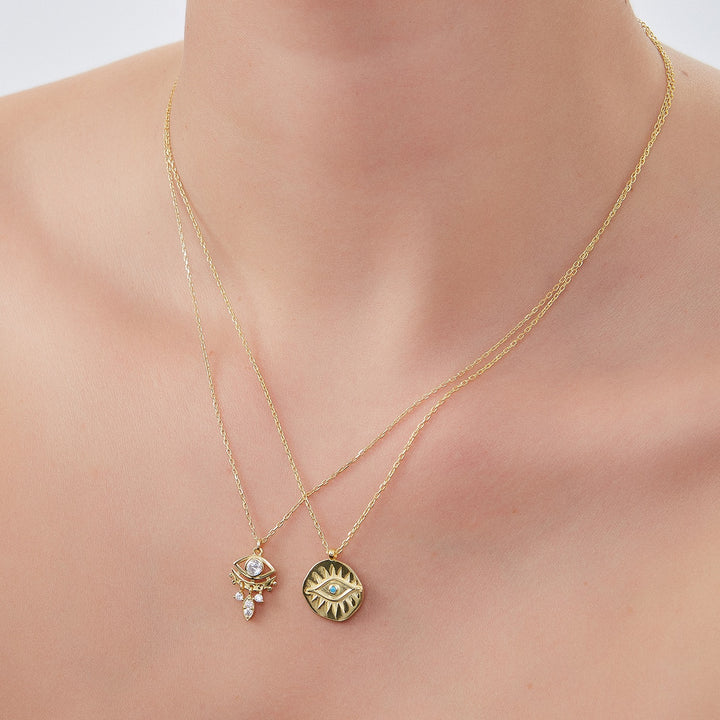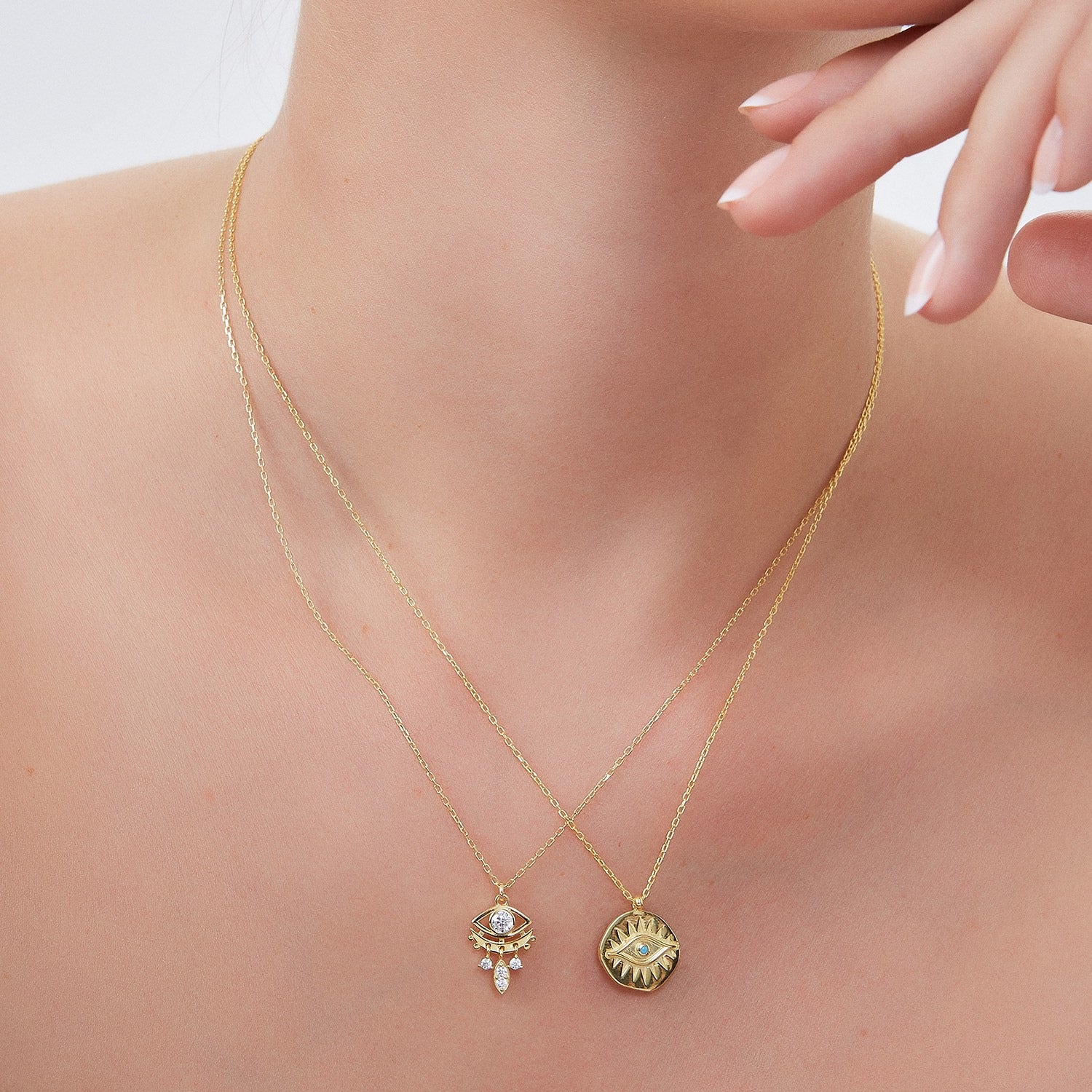 Eye Coin Sterling Silver Evil Eye Necklace - Gold
