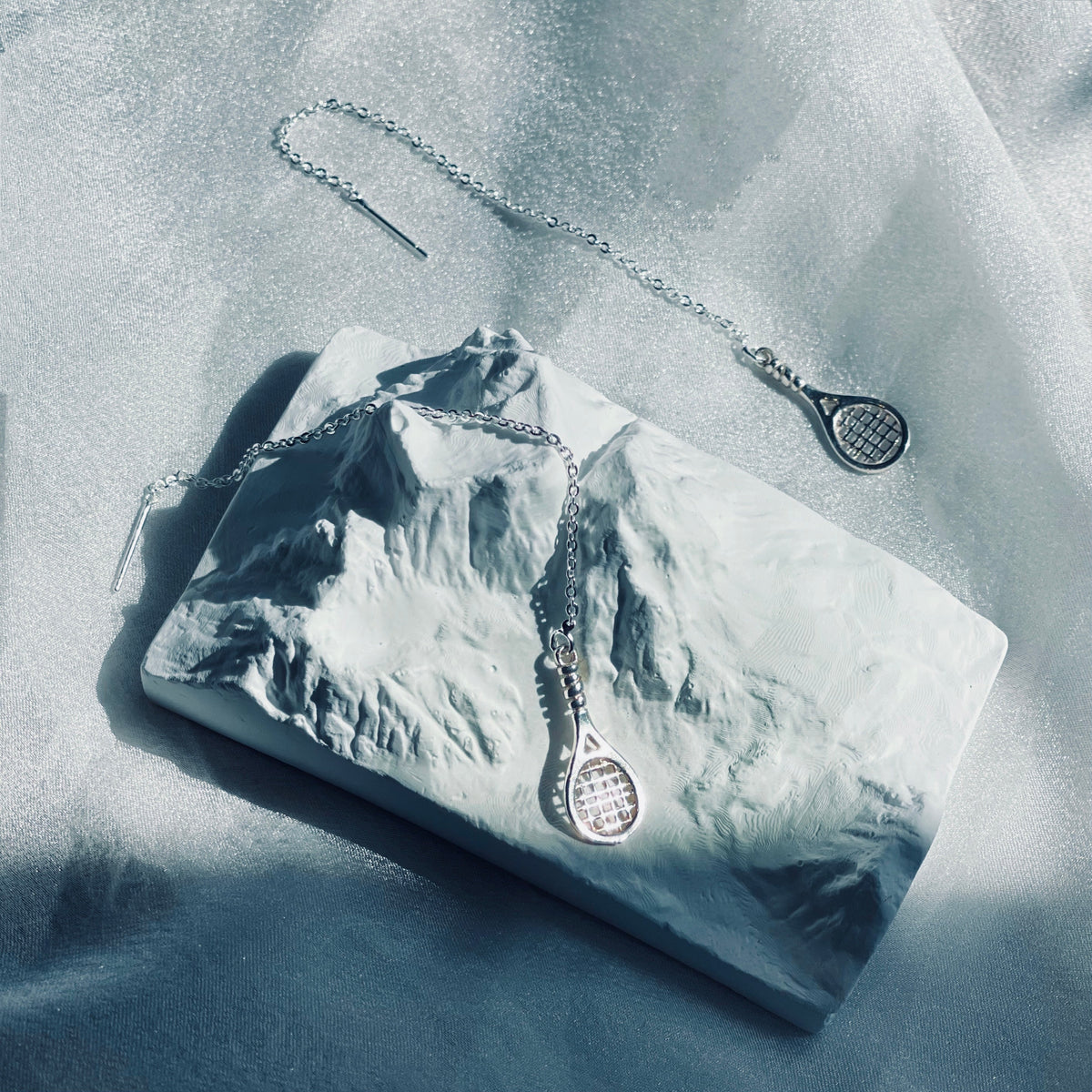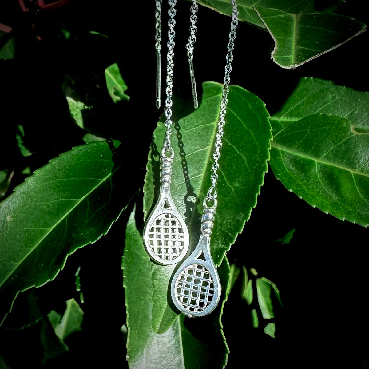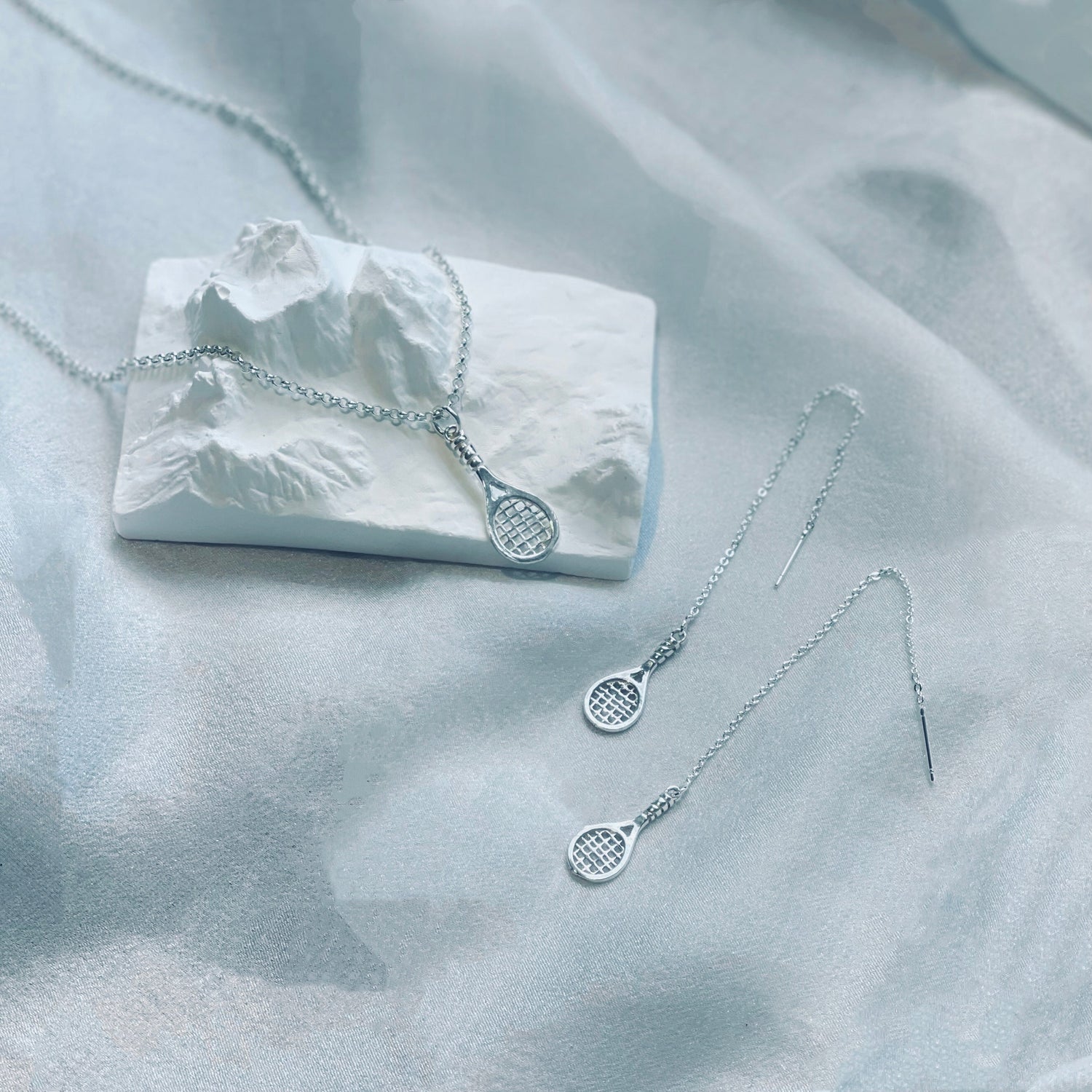 The Wimbledon Charm Tennis Threader Earrings by Ninemoo are exquisitely crafted from pure silver. They feature delicately detailed tennis racquet charms, perfect for subtly showcasing a passion for tennis. These elegant earrings add a refined touch to any outfit and can be paired with a matching necklace.