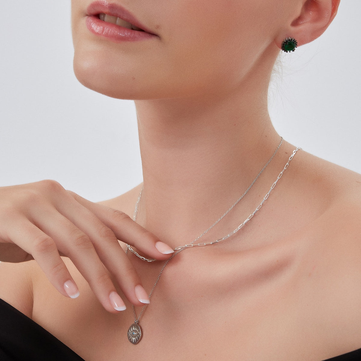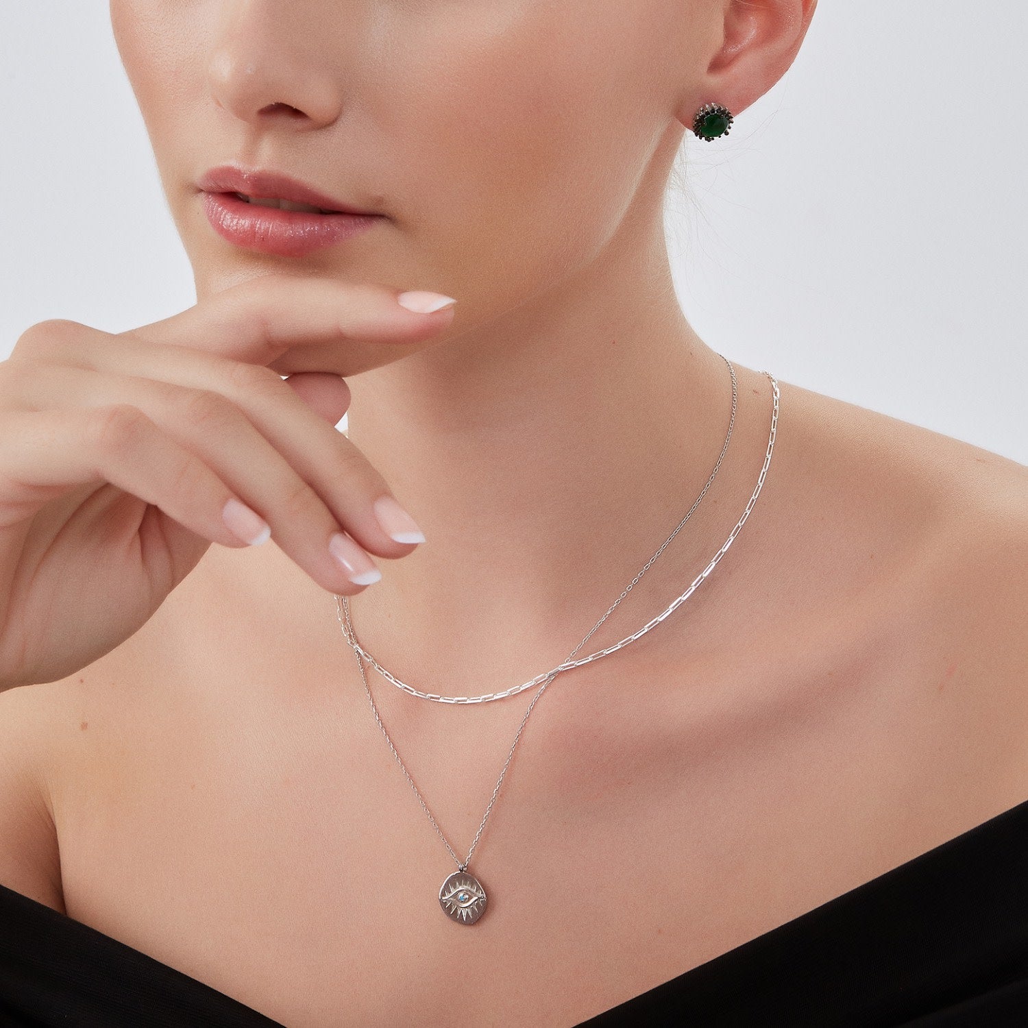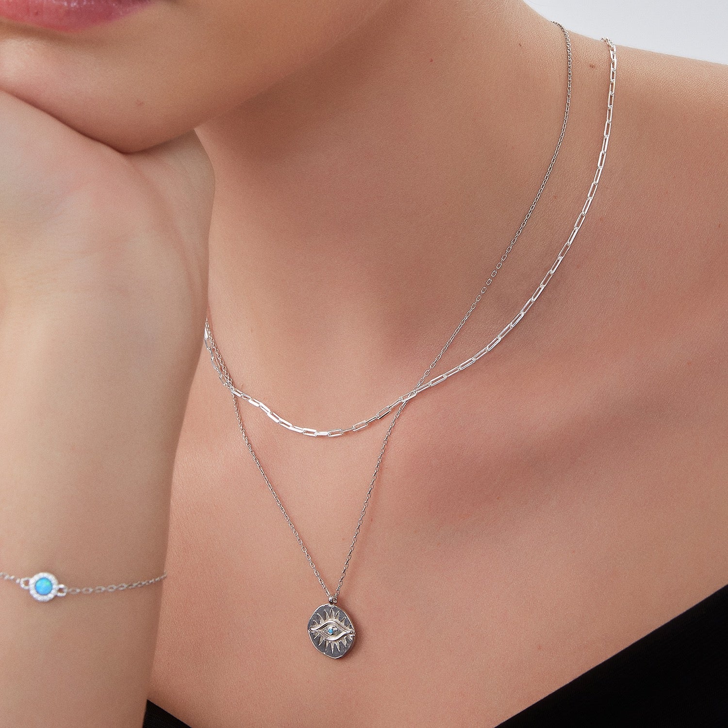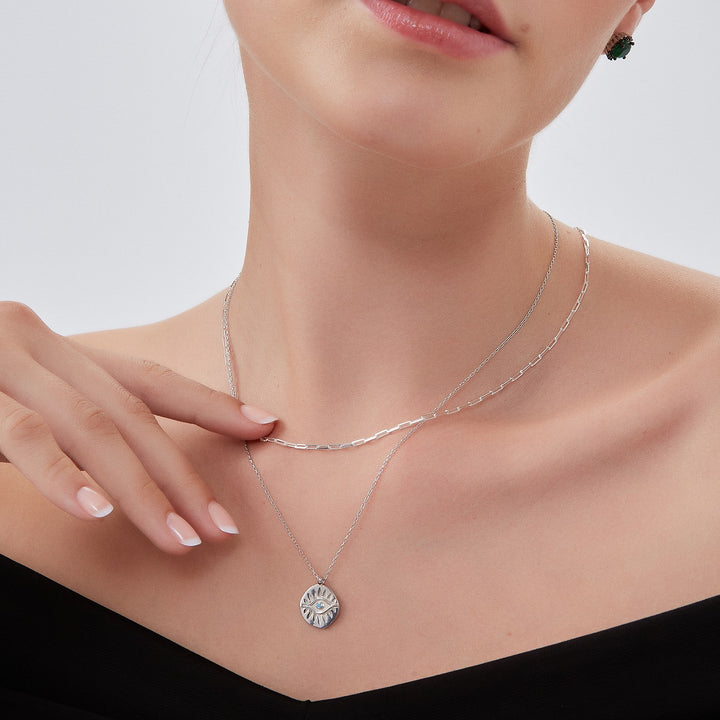 Eye Coin Sterling Silver Evil Eye Necklace - Silver