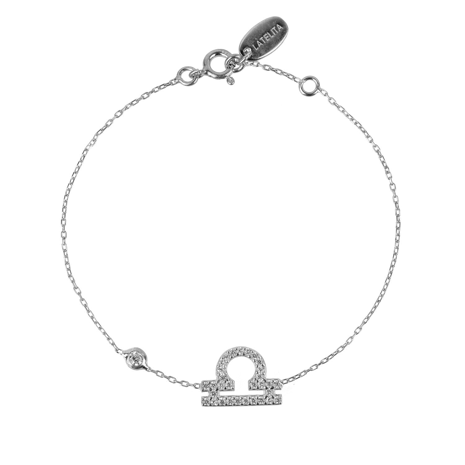 This Zodiac Horoscope Star Sign Bracelet Libra Silver by Latelita is a personalized and elegant accessory. It features multifaceted white zircons that are hand-set to represent the Libra star sign. This bracelet is a perfect way to celebrate your birthday and show off your personal style with a touch of celestial charm.