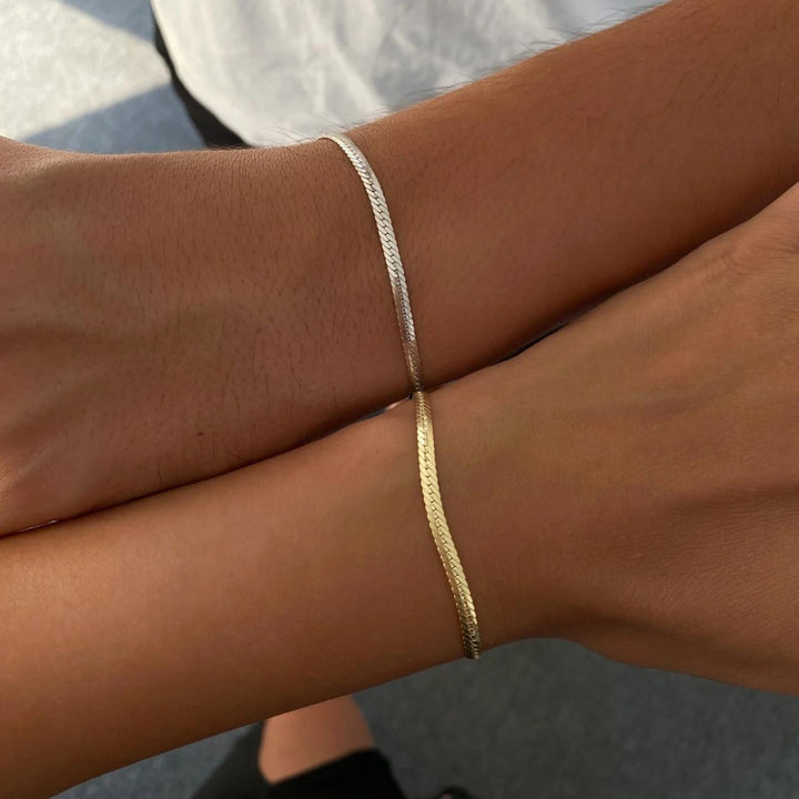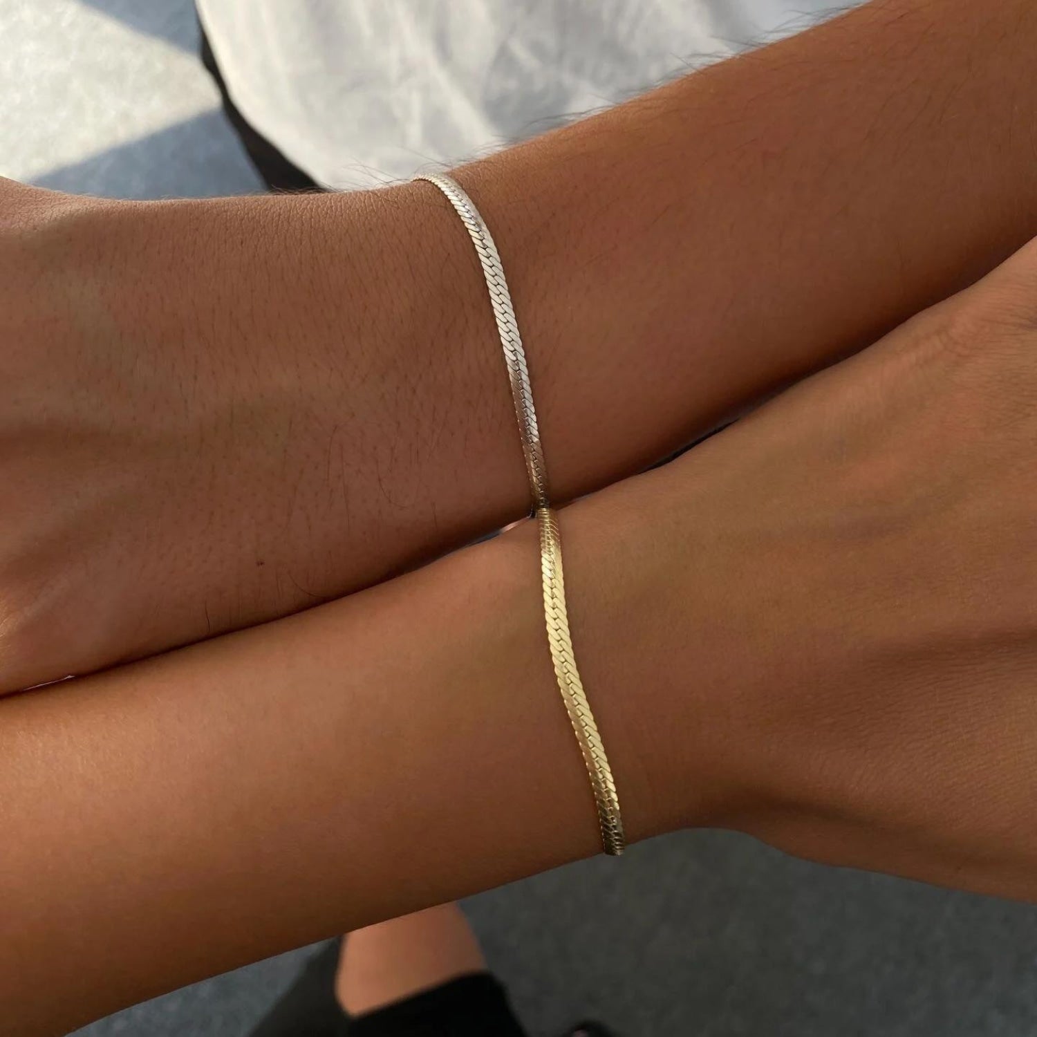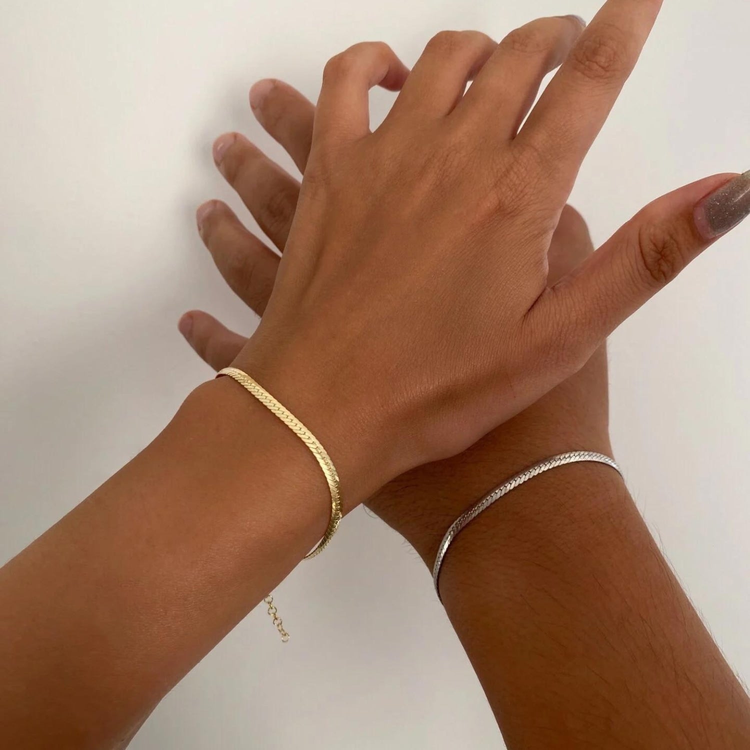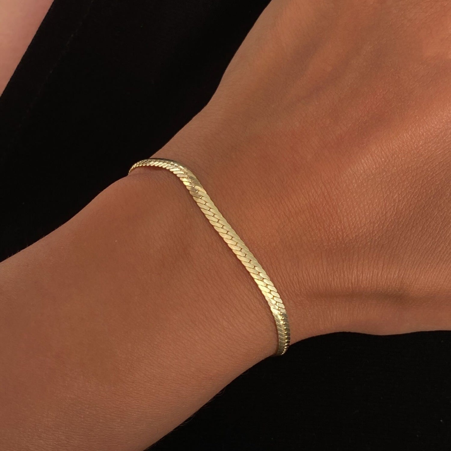 Italian Sterling Silver Herringbone Bracelet - Gold
