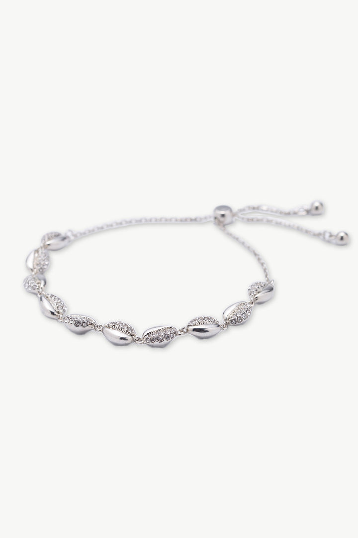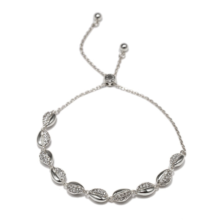 This Lucia Silver Shell Whisper Bracelet by Classicharms captures the delicate shimmer of the ocean with a graceful string of petite shell charms. Each charm sparkles with pavé-set crystals, evoking the glistening of sunlight on waves. Lightweight and comfortable, this bracelet drapes elegantly on the wrist, secured with an adjustable bolo closure for a perfect fit. A refined piece that blends seaside romance with everyday sophistication.