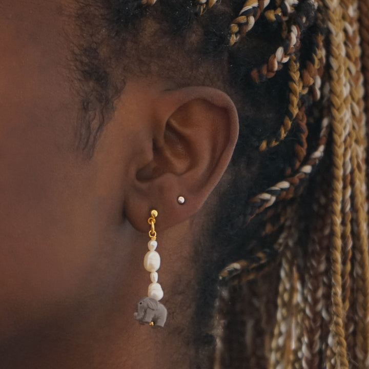 Elephant Pearl Dangle Earrings