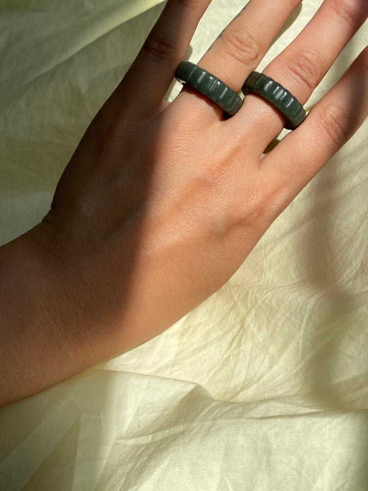 This ring is crafted from natural and untreated nephrite jade, weighing 6g. It has a thickness of 3mm and a width of 6mm.