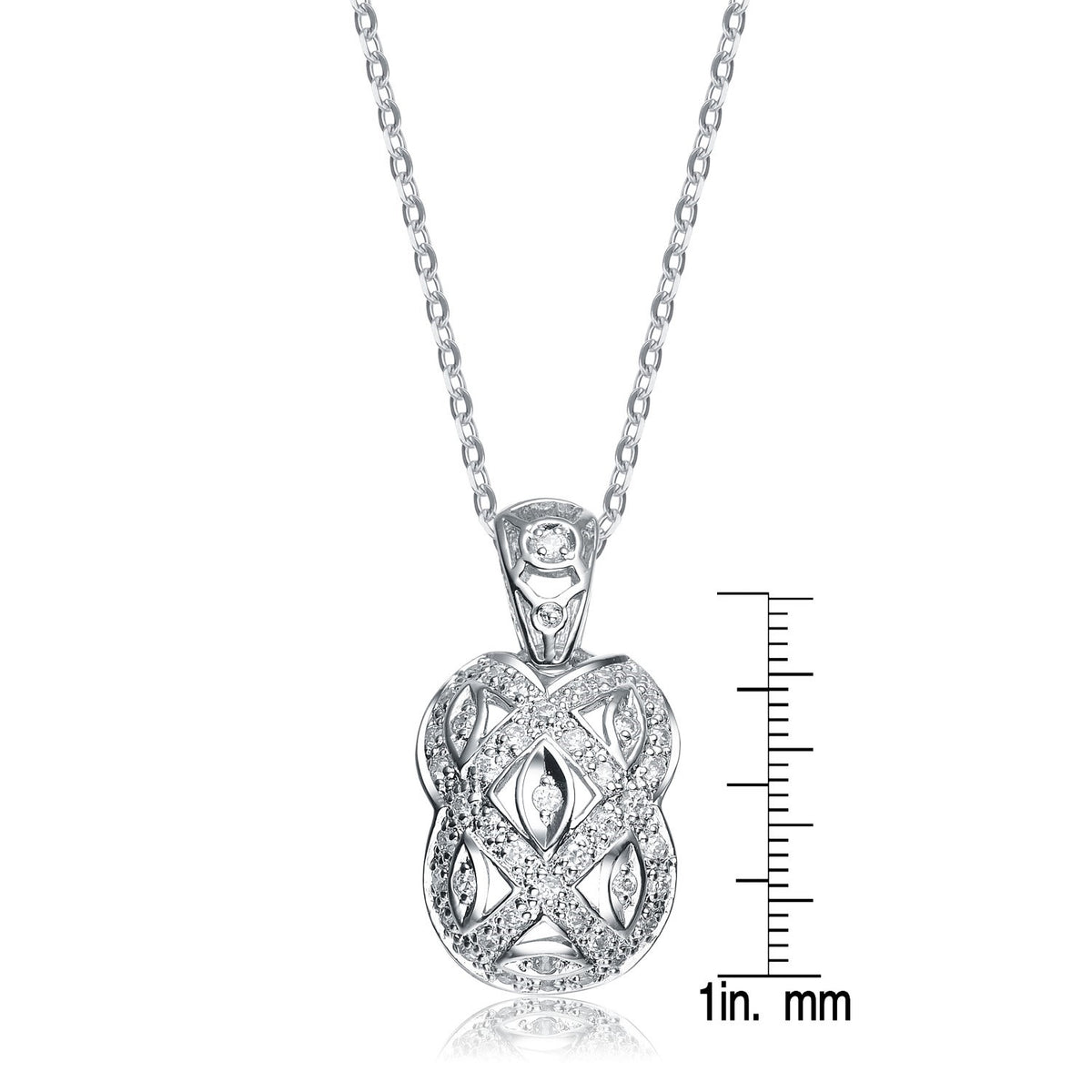 This Sterling Silver Clear Cubic Zirconia Pendant Necklace by Genevive Jewelry is a majestic and affordable piece fit for royalty. A stunning, large clear cubic zirconia stone is elegantly framed by an intricate, interlacing sterling silver design. This pendant is a testament to timeless beauty, adding a touch of sophisticated sparkle to any outfit.