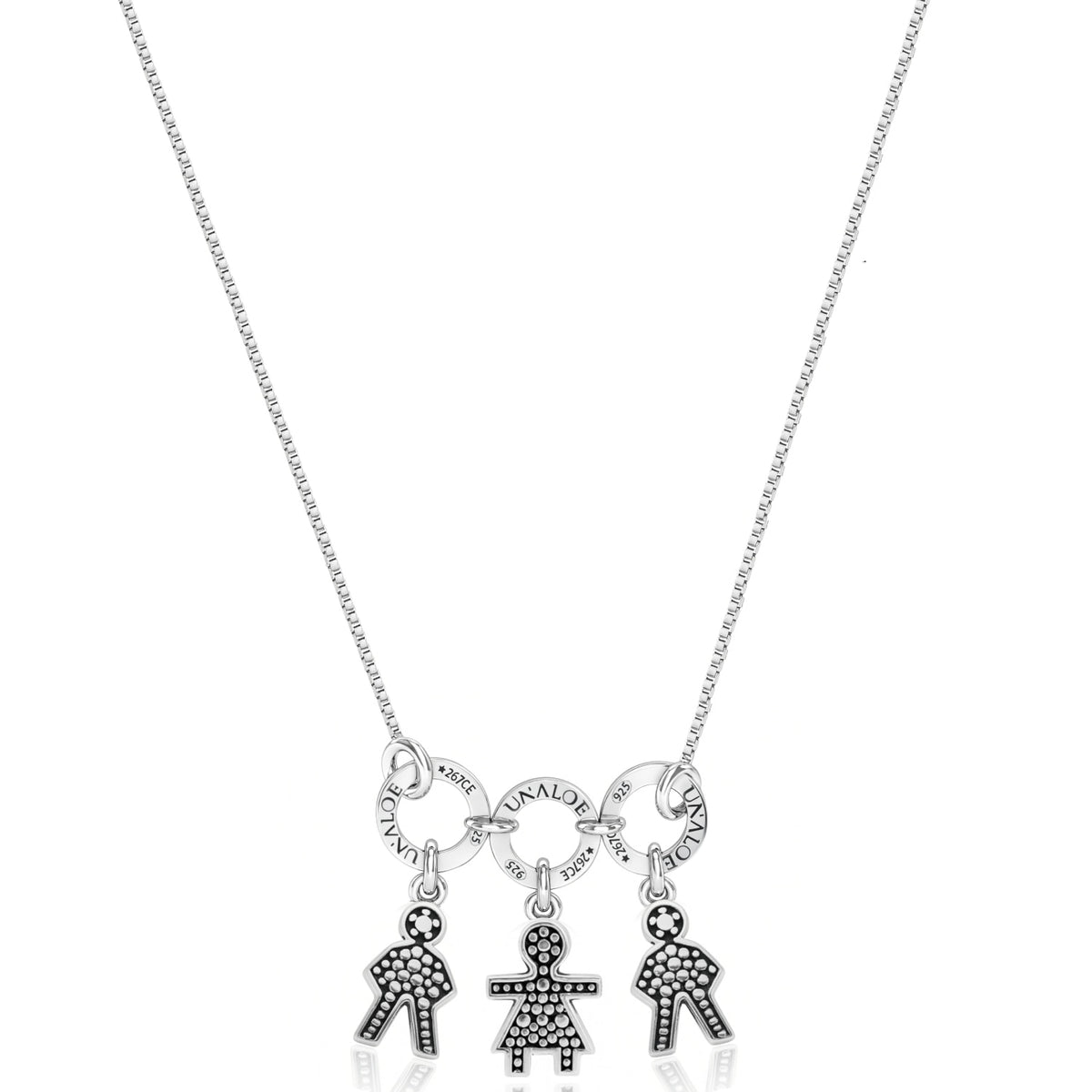 This Sterling Silver Necklace With Three Baby Star Charms by Unaloe is a tender expression of family bonds and joy. Each star-shaped baby charm, finished with a pavé effect, embodies affection and personal meaning. A versatile necklace that can be tailored to represent loved ones, it is a perfect choice for mothers and families seeking elegance with symbolism.