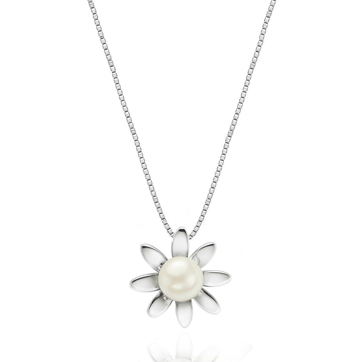 This Daisy Necklace In Silver With Pearl by Unaloe is a luminous jewel that captures the freshness of floral beauty. Its daisy-shaped pendant, delicately crafted in sterling silver, features a radiant mother-of-pearl center that symbolizes purity, innocence, and harmony. Combining artisanal Italian craftsmanship with timeless symbolism, this necklace brings elegance and a touch of natural charm to any ensemble.