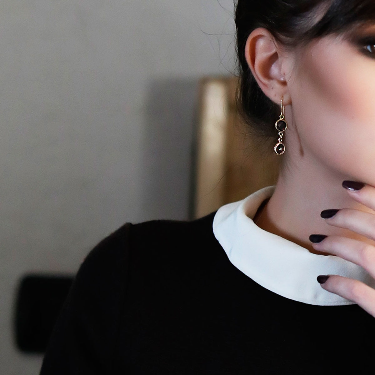 These Vesuvio Smoky Quartz Gold Earrings by Vintouch Italy are an elegant ode to the dramatic landscapes of Naples' volcanic region. Inspired by the raw, natural beauty of Mount Vesuvius, the Brio collection captures a sense of understated power. The delicate gold setting allows the smoky quartz to shine with an alluring depth, creating a sophisticated and simple statement. Ideal for both day and night, these earrings are designed to add a touch of timeless, refined luxury to any look.