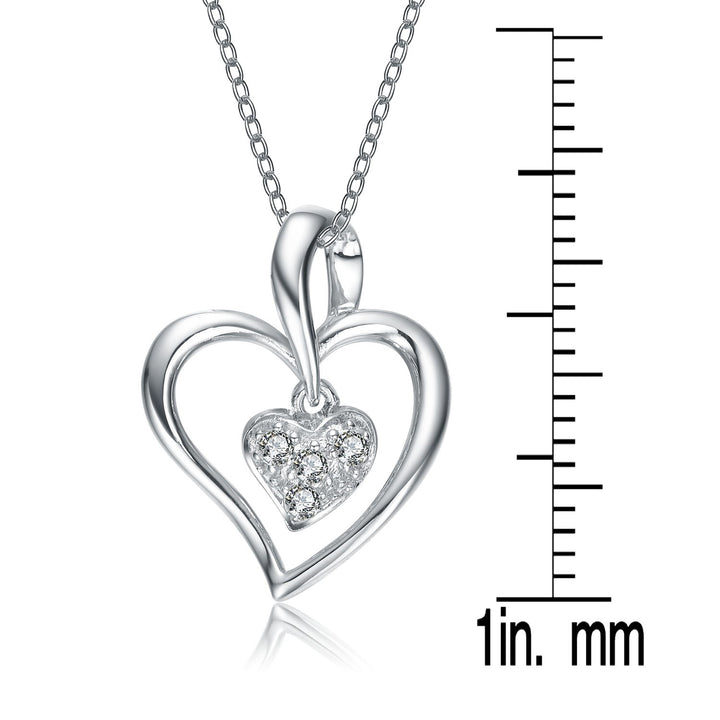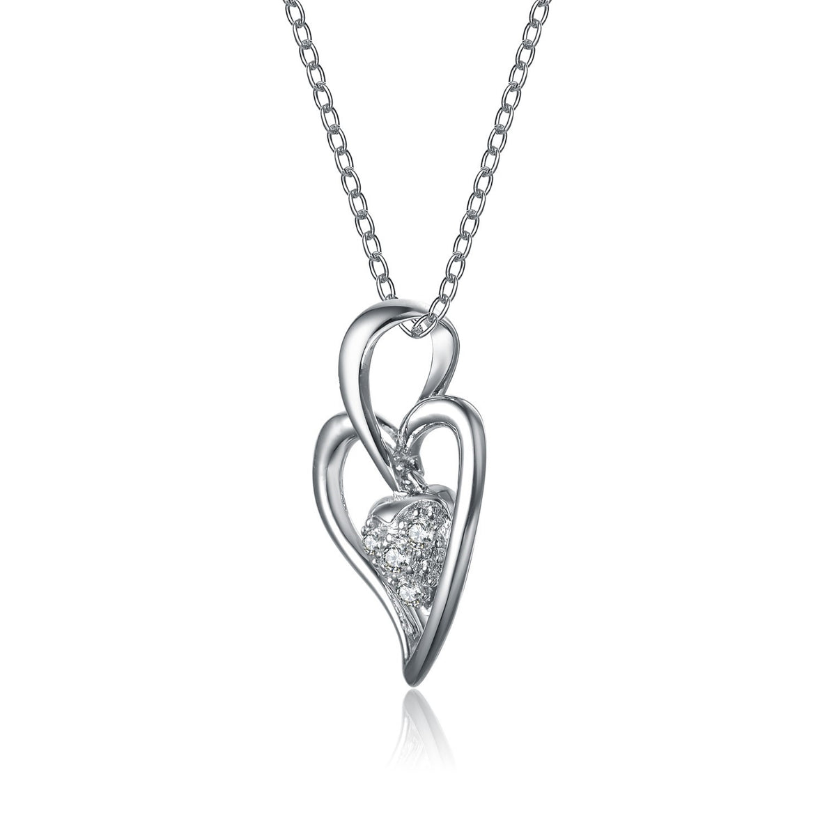 Sterling Silver White Gold Plated With Clear Cubic Zirconia Double Heart Necklace