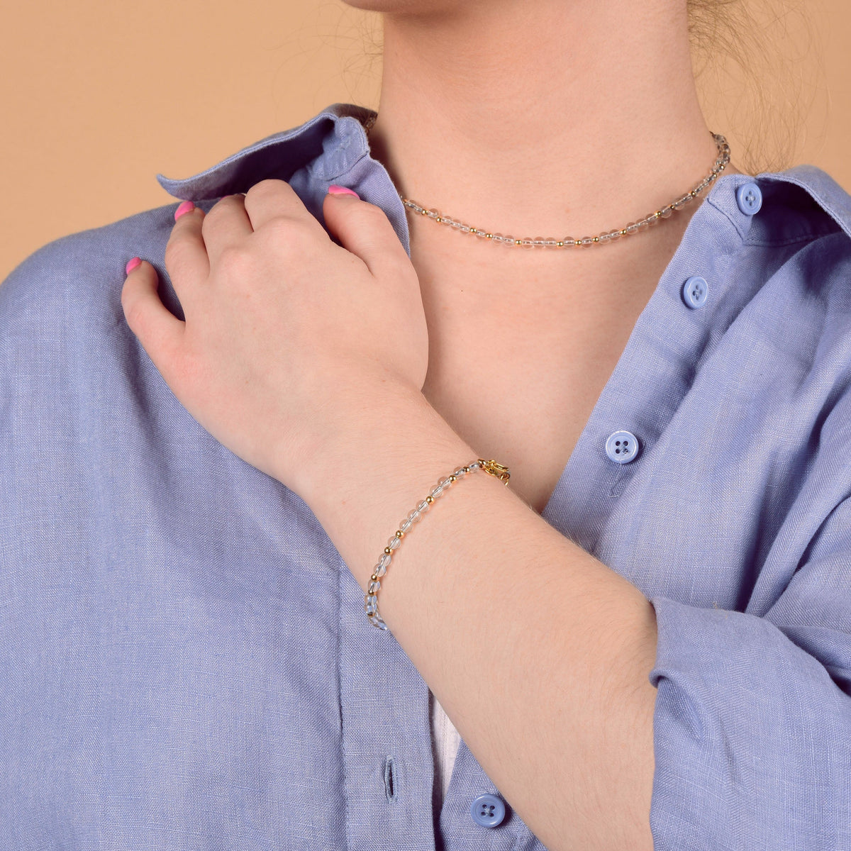 This Jewel Bead April Birthstone Bracelet by Nellou Jewellery is a timeless expression of clarity and protection. Crystal gemstones, celebrated as the birthstone for April, shimmer among eco-silver beads in a design that is both modern and versatile. Perfect as a birthday gift or an everyday piece, it resonates with purity, intuition, and energy while complementing any look.