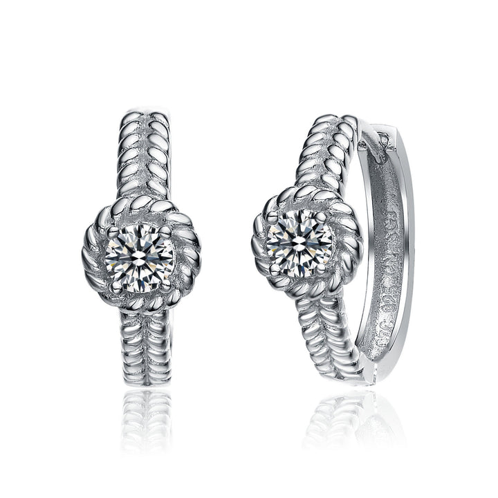 Sterling Silver Cubic Zirconia Cable Hoop Earrings
