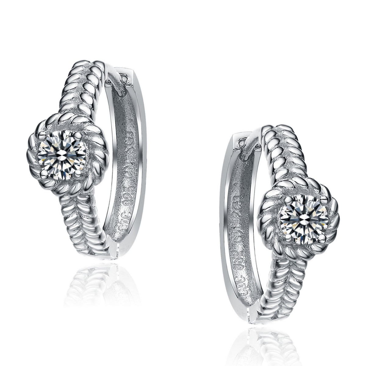 These Sterling Silver Cubic Zirconia Cable Hoop Earrings by Genevive Jewelry are a classic and beautiful accessory. The nice cable hoop design is decorated with dazzling white round-cut cubic zirconia stones, adding a refined sparkle. Crafted from .925 sterling silver, these hoops are a versatile and elegant choice for any occasion.