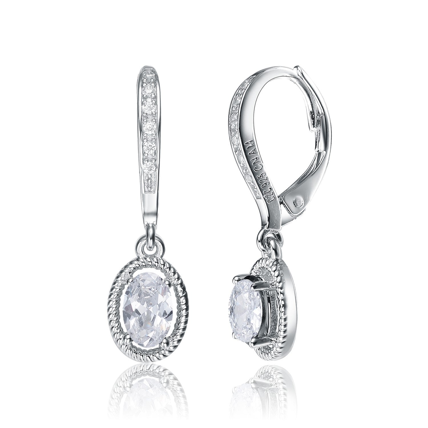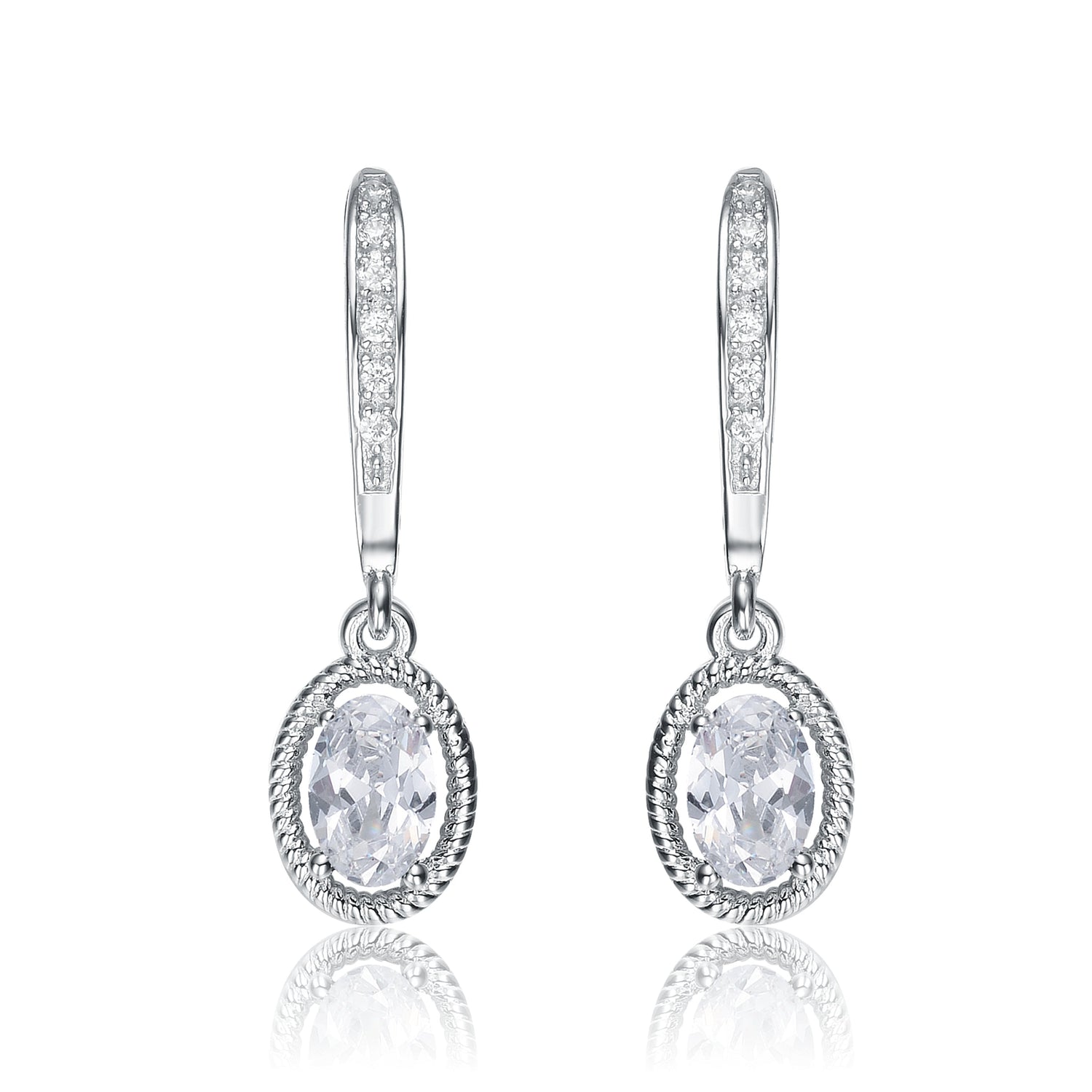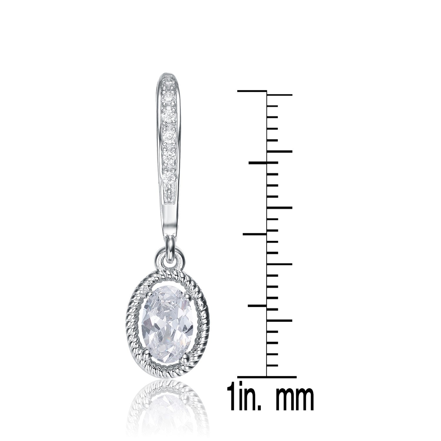 Sterling Silver White Cubic Zirconia Oval Dangling Earrings