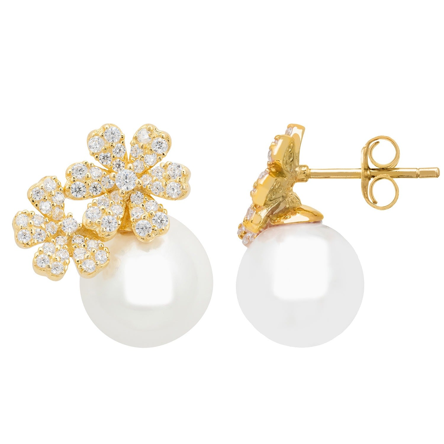 Crafted in 925 sterling silver with 18K gold plating. Features AAA-grade cubic zirconia and pearls.