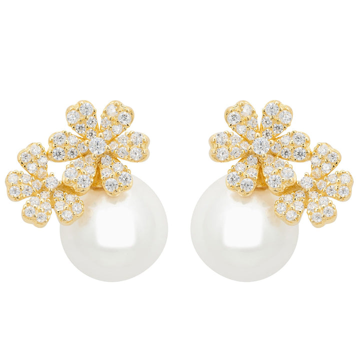 Bouquet And Pearl Stud Earrings Gold