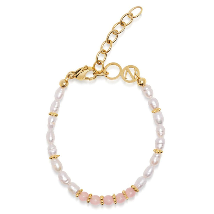 This Women's Beaded Bracelet With Pearl And Pink Opal by Nialaya is a delicate and beautiful accessory. It is handcrafted with 4mm baroque pearl and pink opal beads. The lock and dividers are made from stainless steel with gold plating. This bracelet is inspired by the sea and the stunning landscape of Capri, with the soft pink opal adding a final touch to sun-kissed skin.
